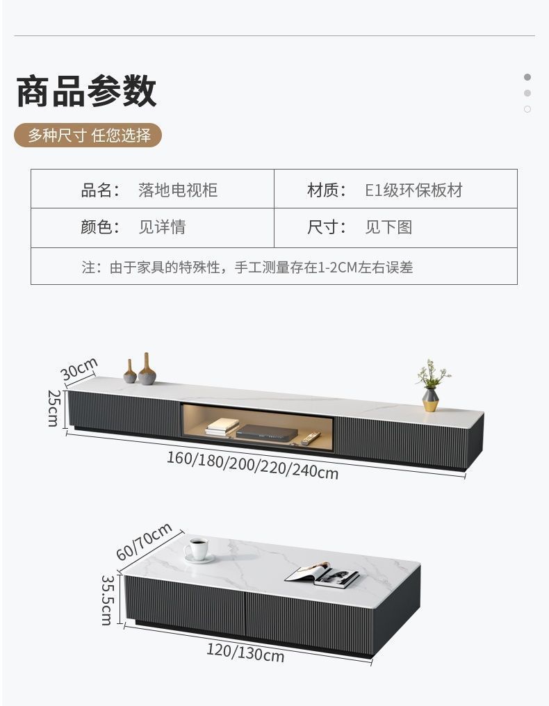 2025 새로운 TV 캐비닛과 커피 테이블 조합 간단한 현대적인 가벼운 럭셔리 거실 바닥 스톤 슬레이트 커피 테이블 TV 캐비닛 세트스토어 가기