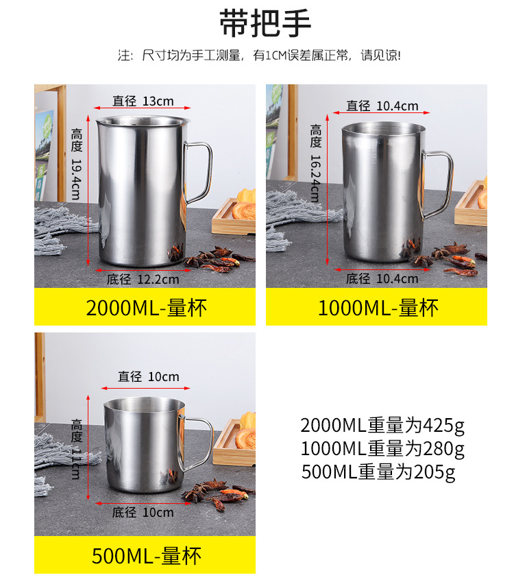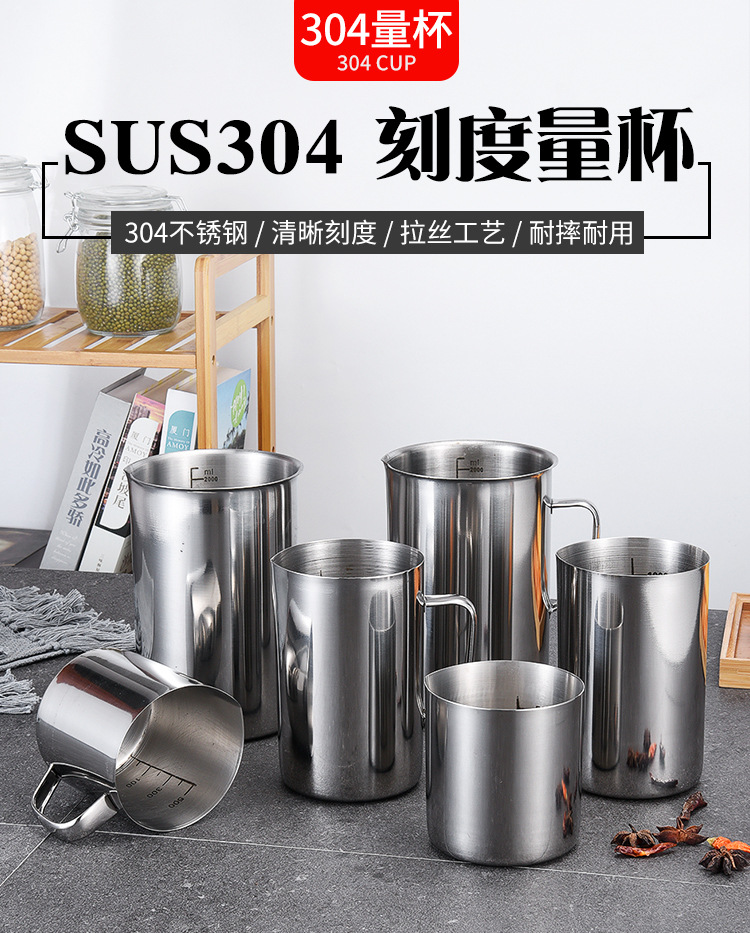 스테인리스 스틸 가공 측정 컵 304 실험실 비커 온스 컵 2L 졸업 베이킹 컵 액체 측정 컵스토어 가기