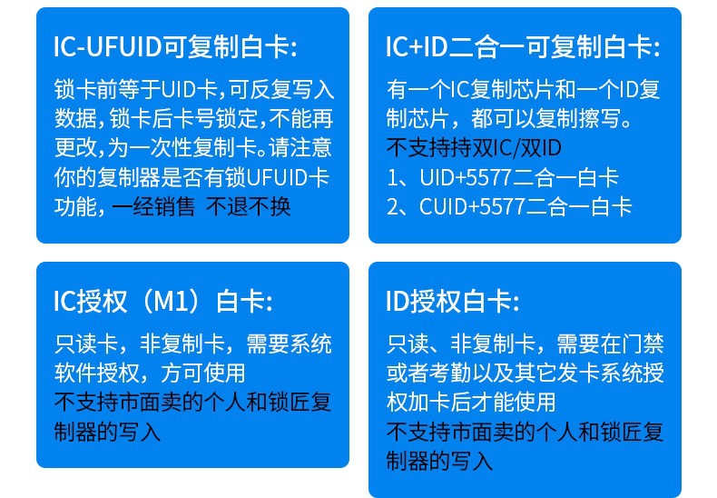 • 인증된 IC+ID는 모두 잘 작동합니다(5개 팩)