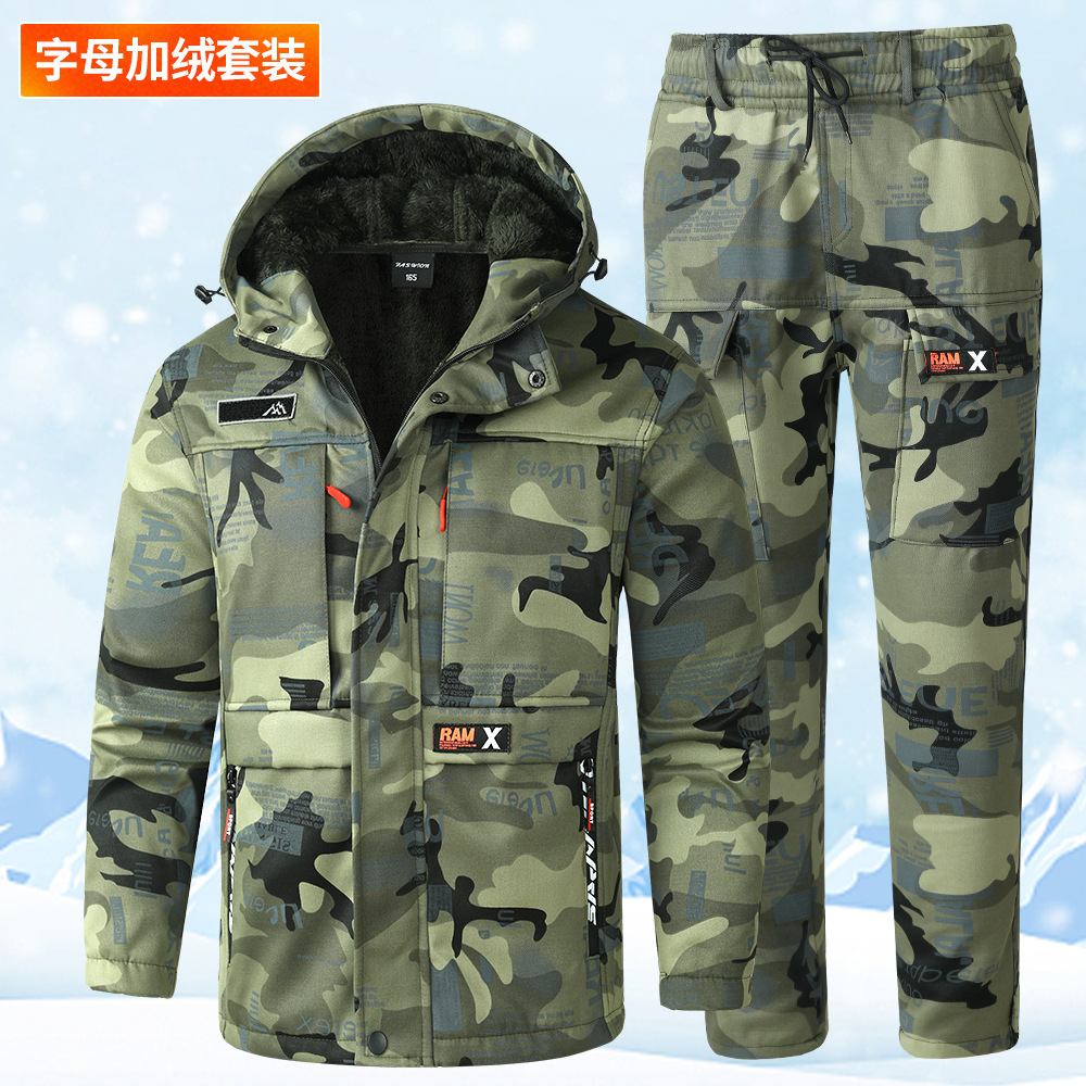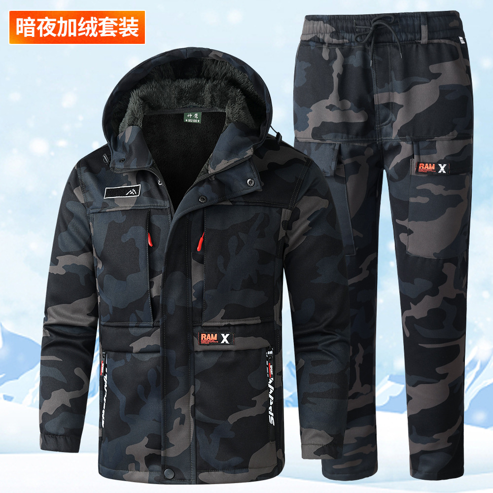 캐시미어 세트 가을과 겨울 남성 작업복 두꺼운 방한 방풍 방수 따뜻한 사이클링 등산 세트 야외스토어 가기