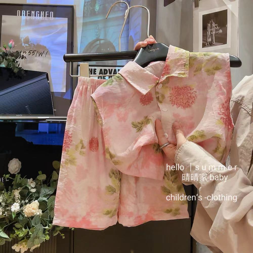 여름 새로운 Guofeng 민소매 남성 보물 조끼 세트 2024 중국 캐주얼 어린이 세트 아기 아동복 도매스토어 가기