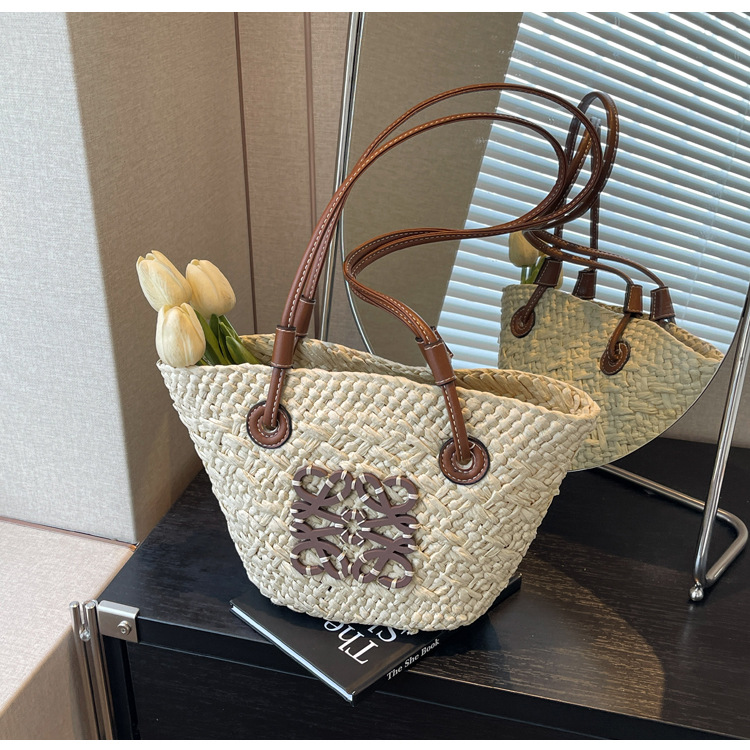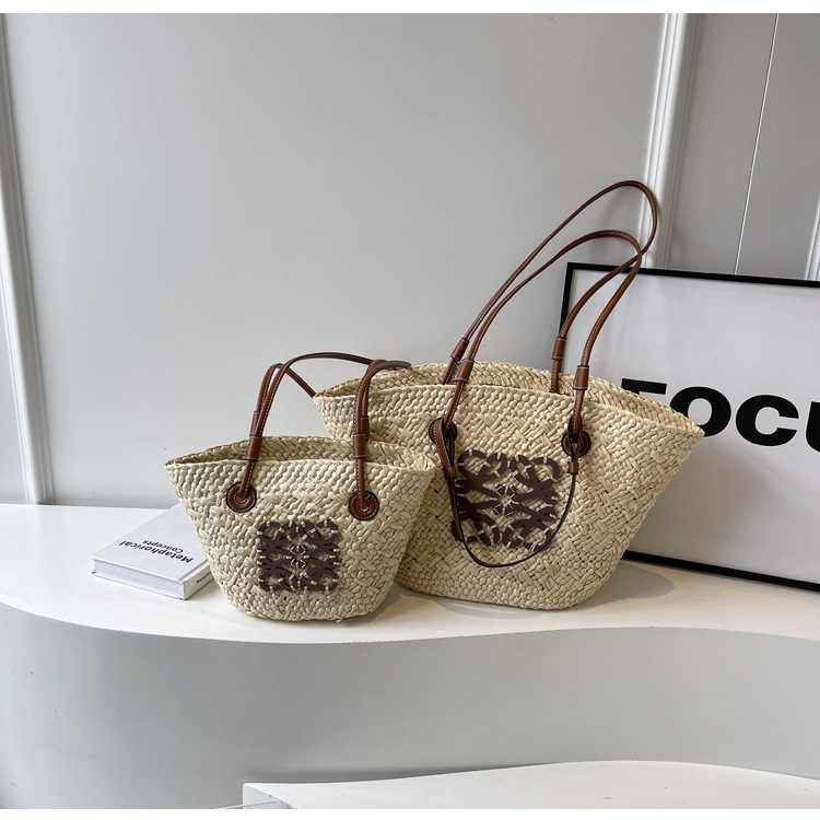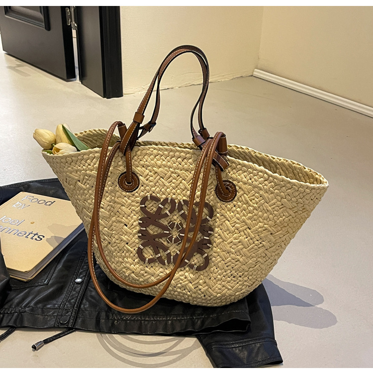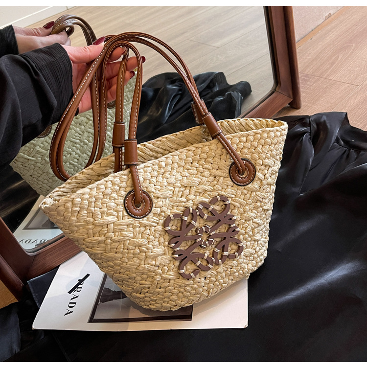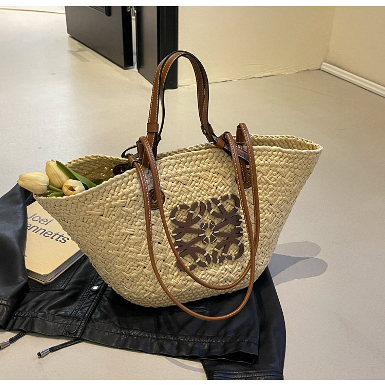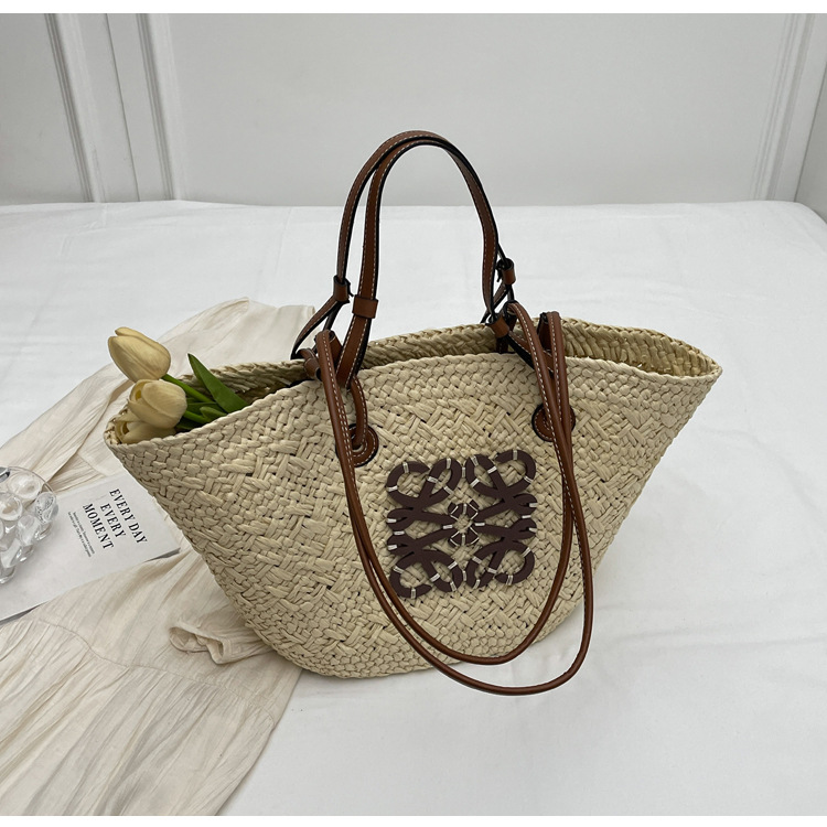 밀짚 가방 여성용 여름 가방 대용량 짠 토트 백 핸드백 해변 해변 가방 여성용 가방 유행