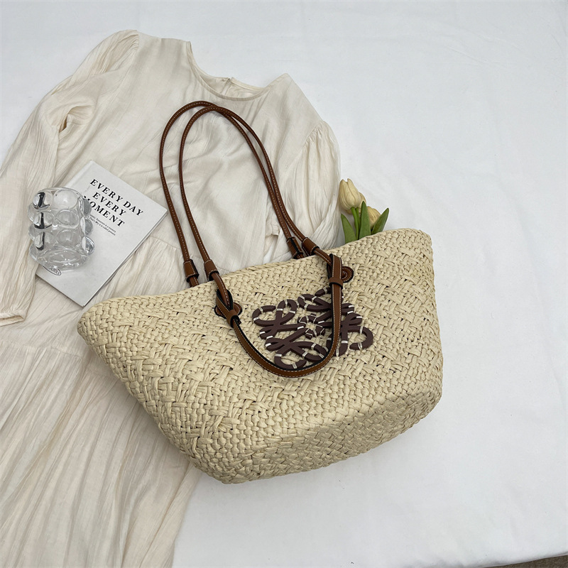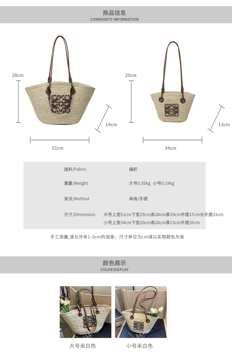 밀짚 가방 여성용 여름 가방 대용량 짠 토트 백 핸드백 해변 해변 가방 여성용 가방 유행스토어 가기