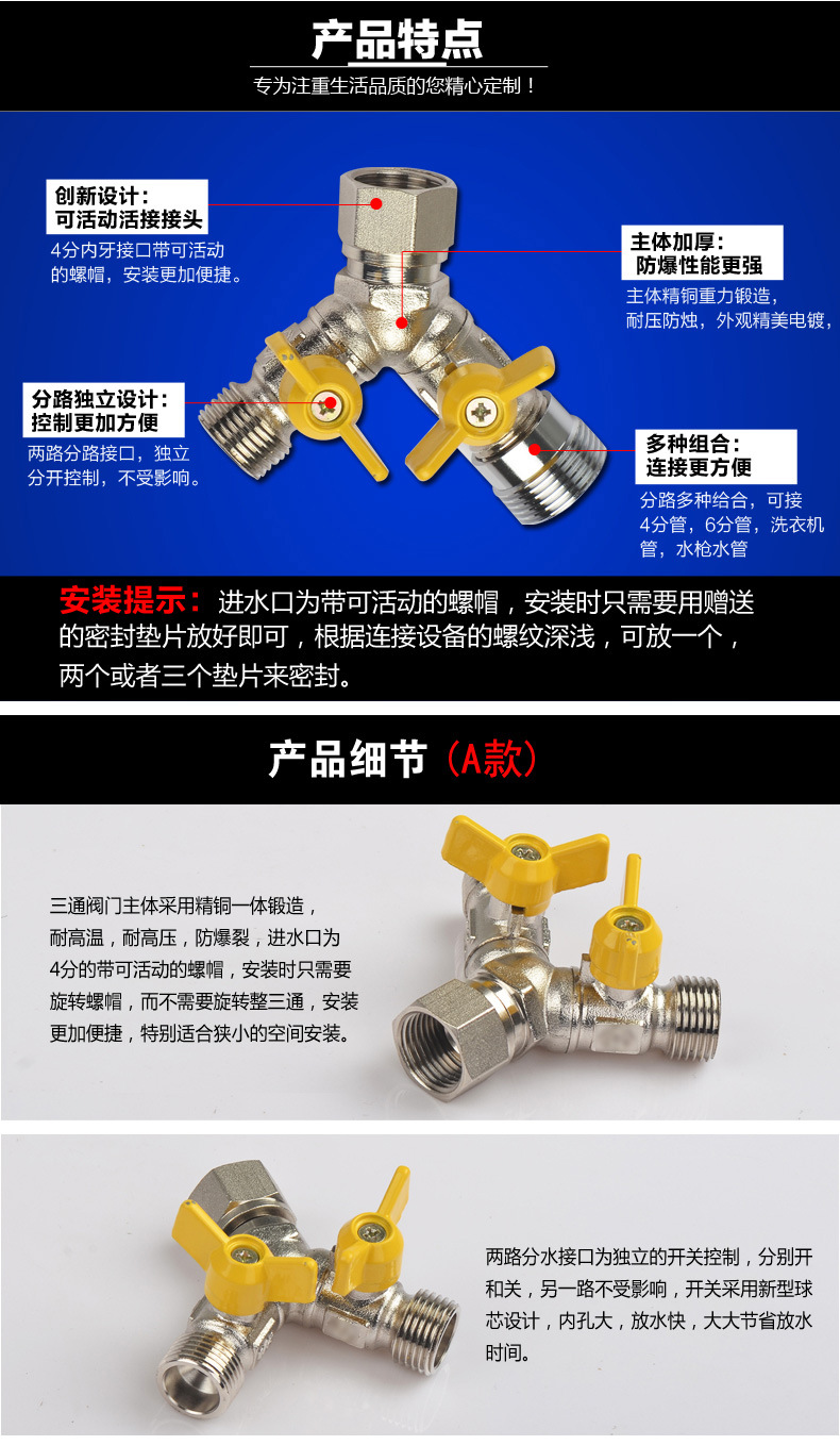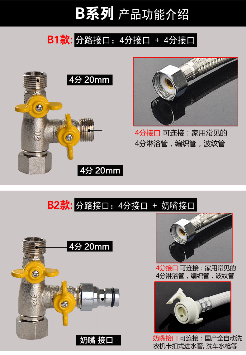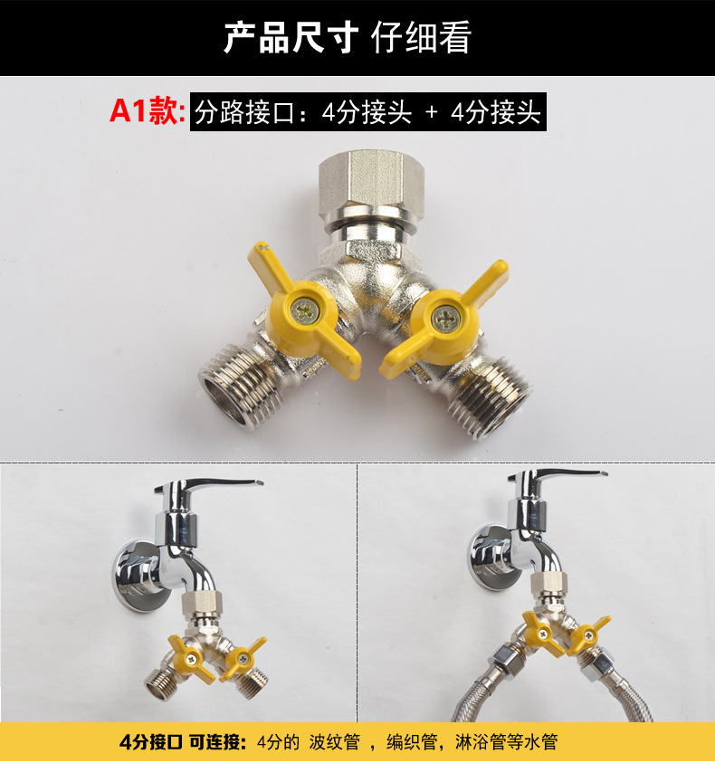 세탁기 수도꼭지 일대일 2 어댑터 물 입구 1 인 2 아웃 3 방향 전환기 이중 출구 이중 사용 밸브