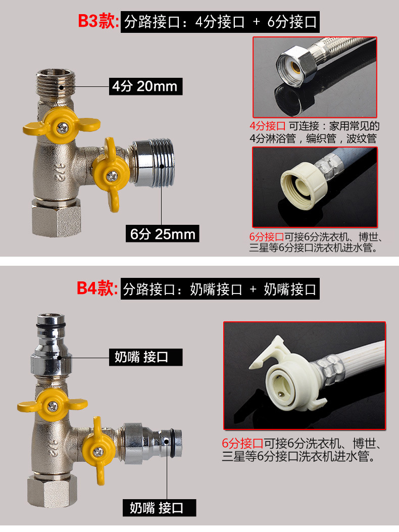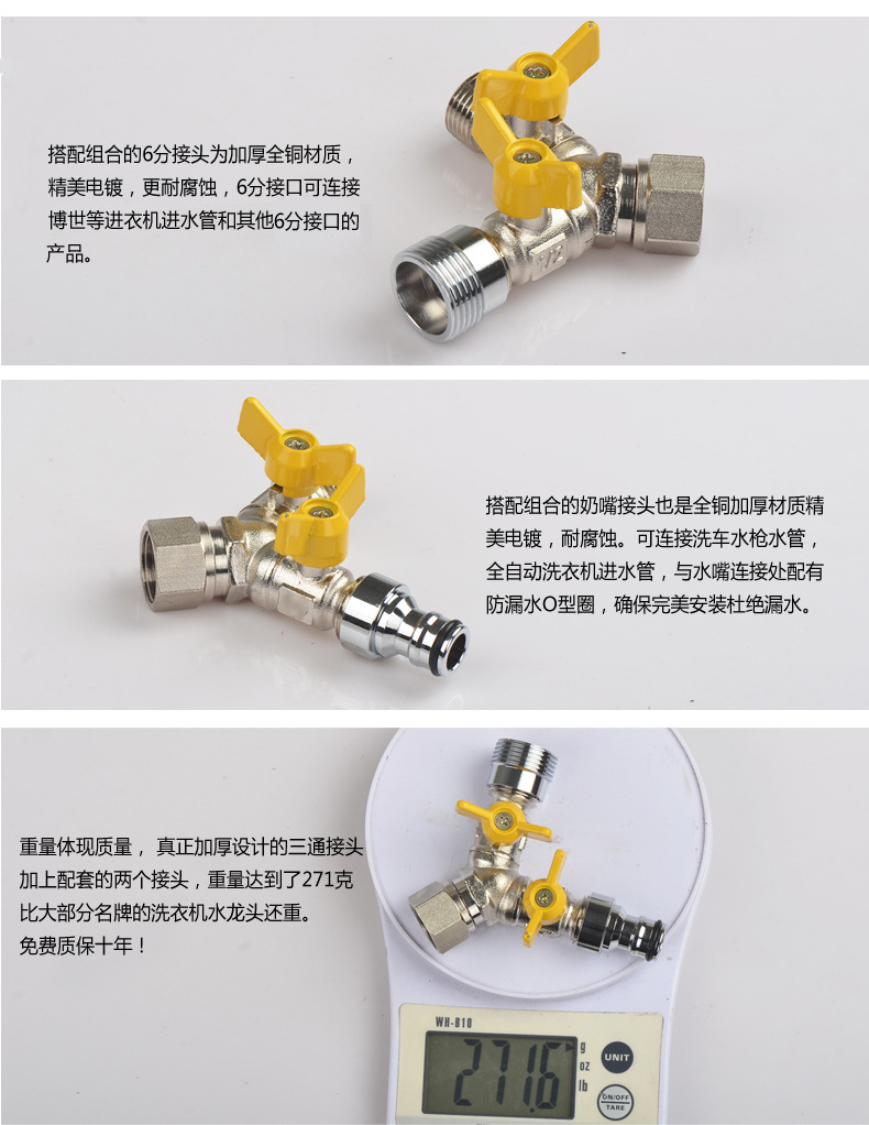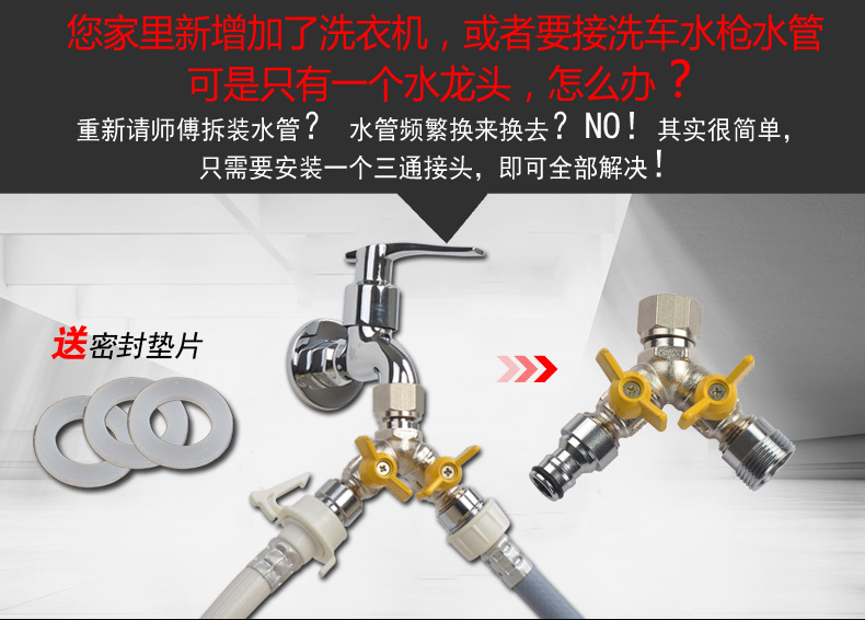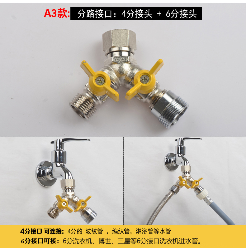 세탁기 수도꼭지 일대일 2 어댑터 물 입구 1 인 2 아웃 3 방향 전환기 이중 출구 이중 사용 밸브스토어 가기