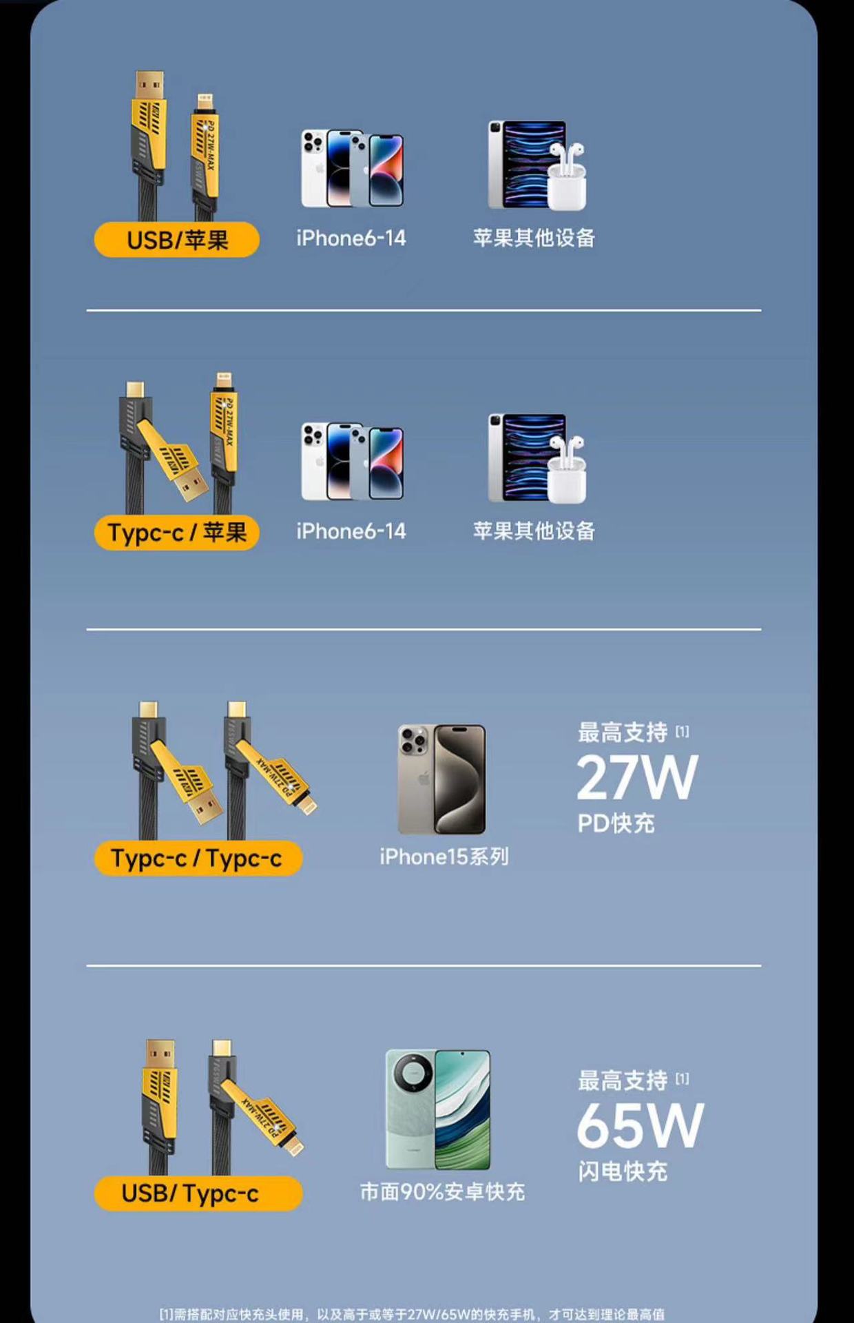 4 대 1 고속 충전 케이블은 Apple Huawei Xiaomi 초고속 충전 2 대 2 멀티 헤드 휴대 전화 데이터 케이블에 적합합니다.스토어 가기