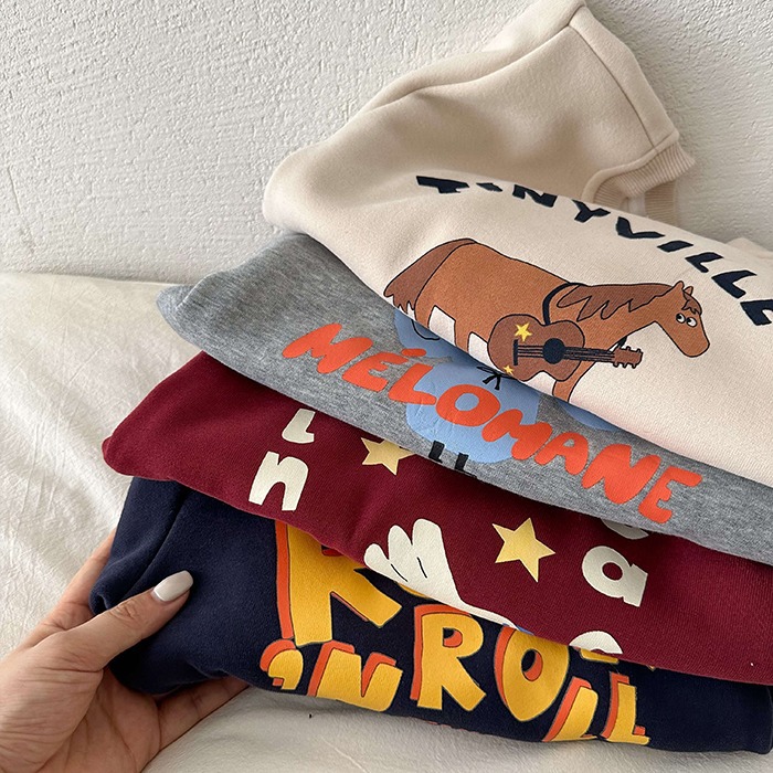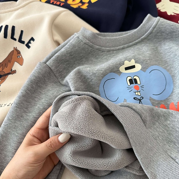 아동용 스웨트셔츠, 벨벳 남아용 코트, 가을 겨울 아동용 만화 풀오버, 트렌디한 유아용 하의 셔츠, 여성용 패셔너블스토어 가기