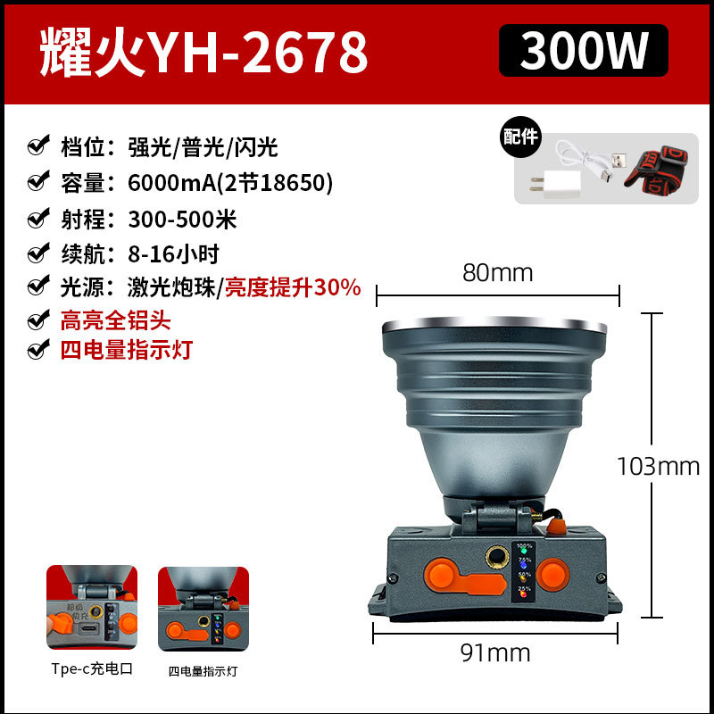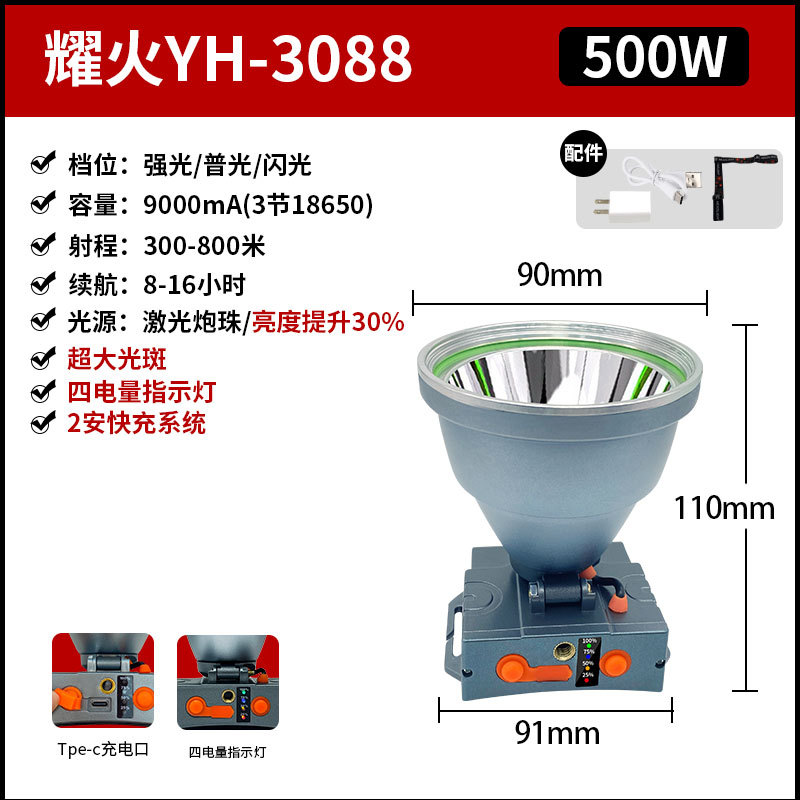 • 새로운 YH-3088/500W/초대형 광점/레이저 포/슈퍼 브라이트/2A 고속 충전