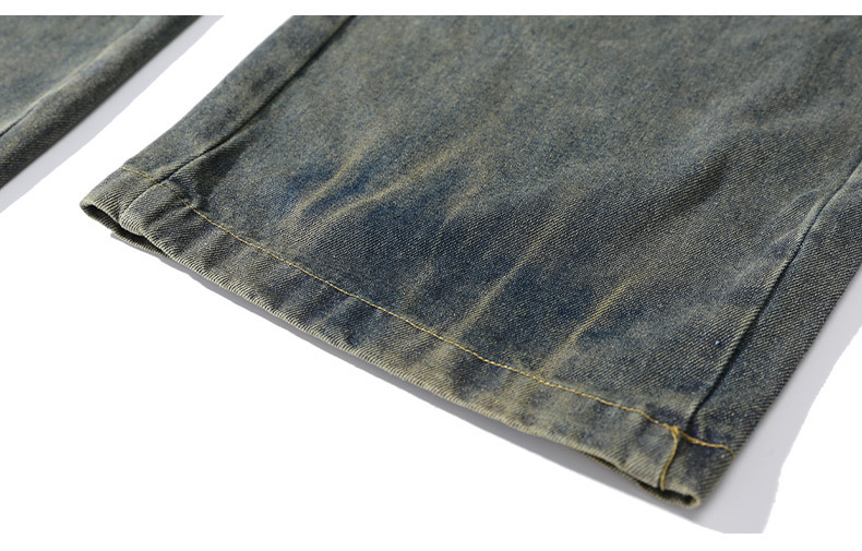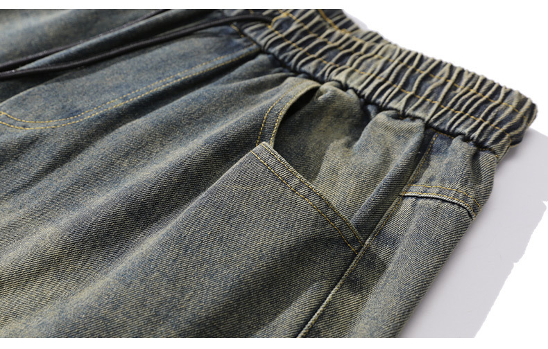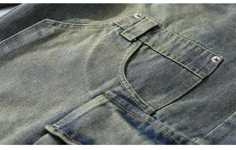 유행 올 매치 봄과 가을 새로운 무거운 미국 멀티 포켓 올드 청바지 남자의 느슨한 스트레이트 와이드 레그 바지스토어 가기