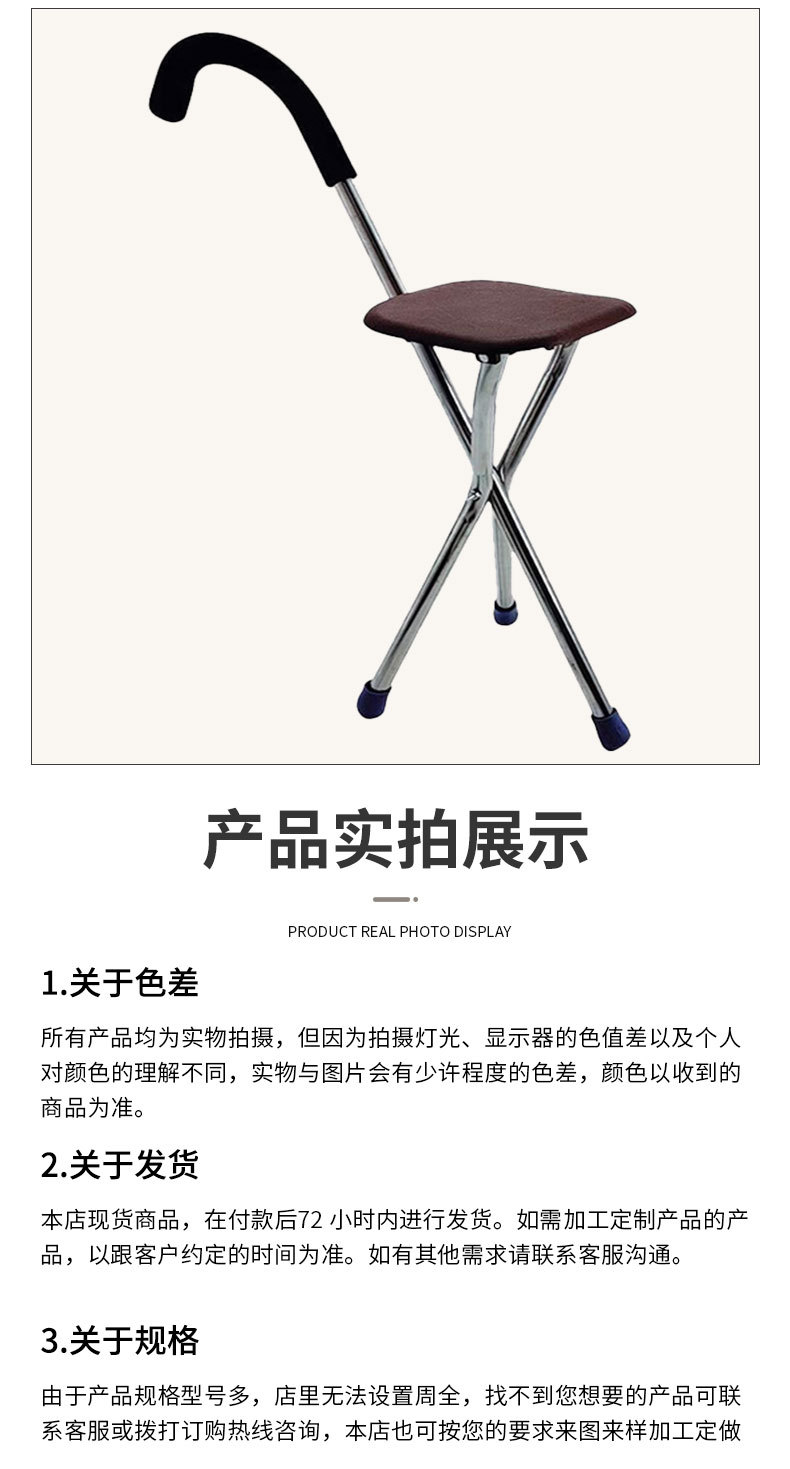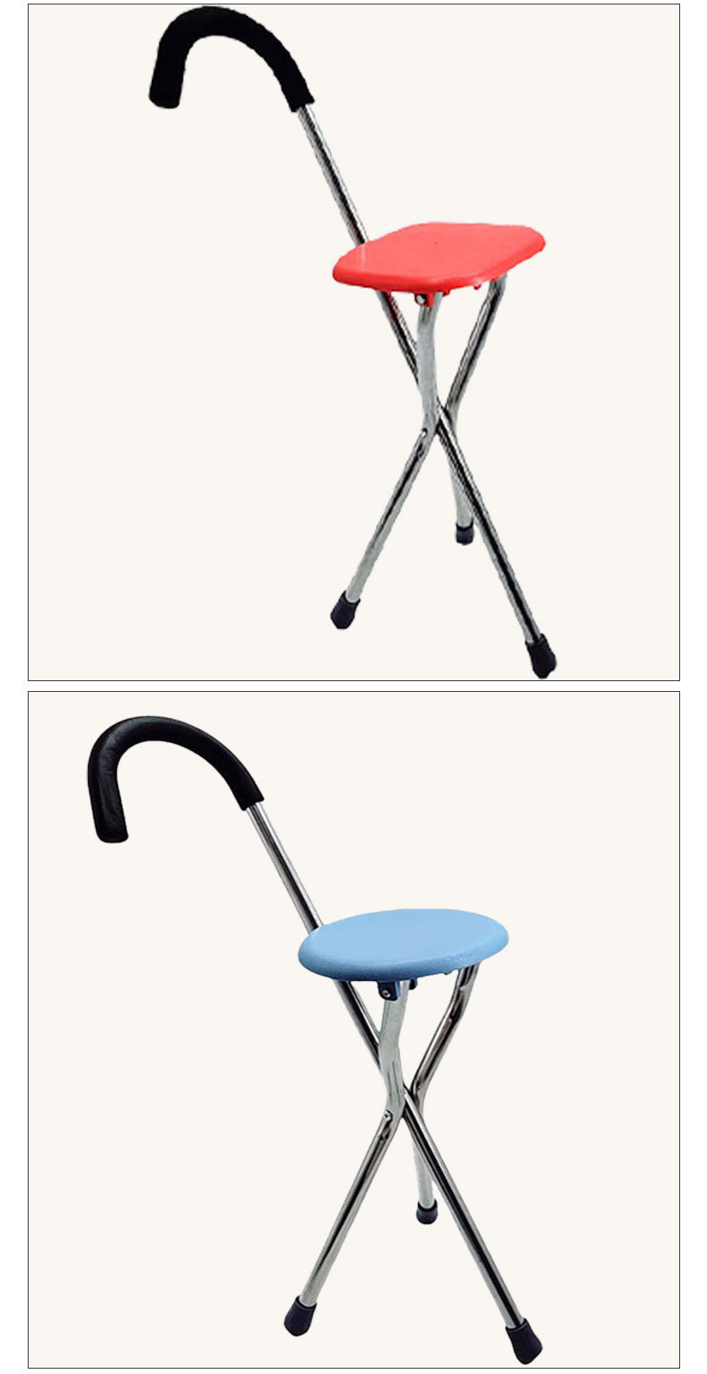 노인용 스테인레스 스틸 지팡이 의자, 4족 미끄럼 방지 레저용 의자, 두꺼운 접이식 지팡이 의자, 3족 지팡이 의자스토어 가기