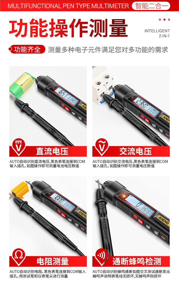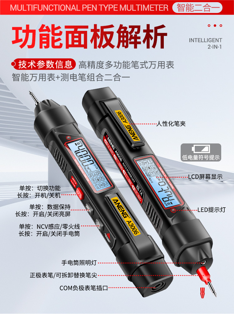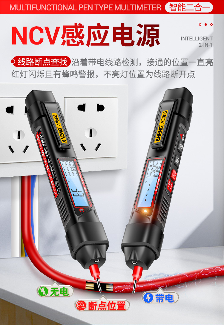 측정 전기 펜 유형 멀티 미터 멀티 기능 측정 브레이크 포인트 자동 지능형 디지털 고정밀 용량 미터. 도매