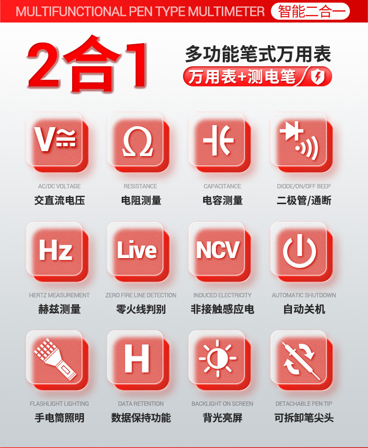 • 2-in-1 펜 멀티미터 + 정전 용량 기능이 있는 액세서리