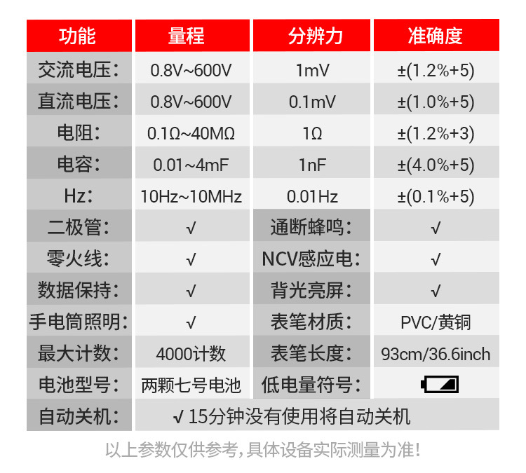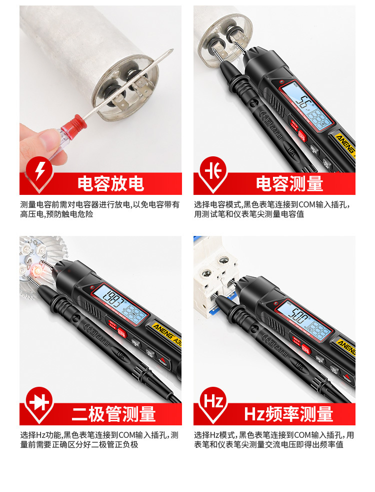 측정 전기 펜 유형 멀티 미터 멀티 기능 측정 브레이크 포인트 자동 지능형 디지털 고정밀 용량 미터. 도매스토어 가기