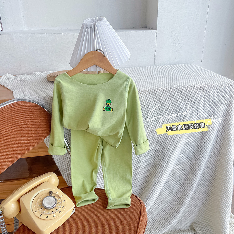 어린이 벨벳 가을 옷과 바지 바지 바지 바지 파자마 소녀 속옷 세트 소년과 아기를위한 뼈없는 따뜻한 집 옷스토어 가기