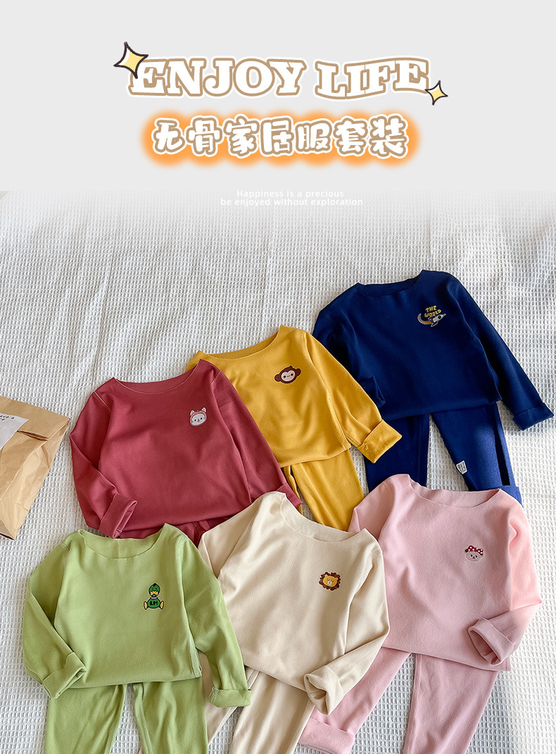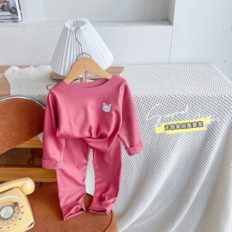 어린이 벨벳 가을 옷과 바지 바지 바지 바지 파자마 소녀 속옷 세트 소년과 아기를위한 뼈없는 따뜻한 집 옷