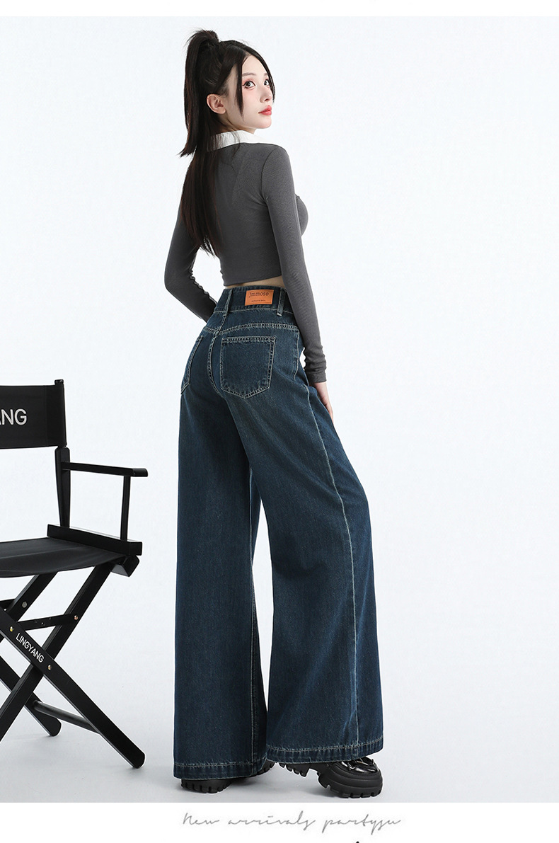 키가 큰 여성을 위한 다크블루 와이드팬츠 2025 봄 신상 하이웨이스트 드레이프 빅팬츠스토어 가기