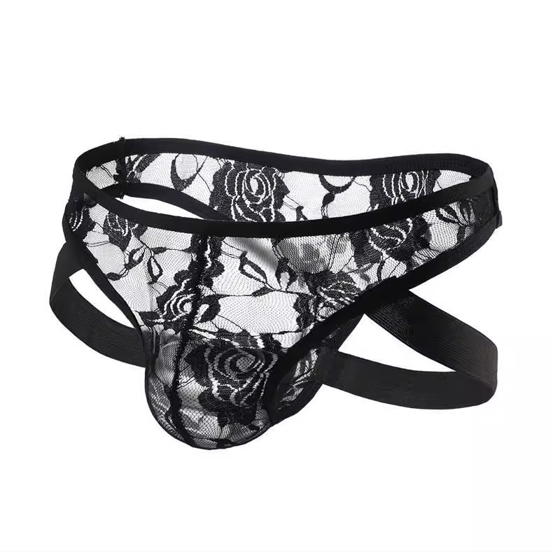 한 남자의 낮은 허리 엉덩이 레이스 속옷 섹시한 더블 T 자형 단단한 빈 투명 브리프 8887스토어 가기