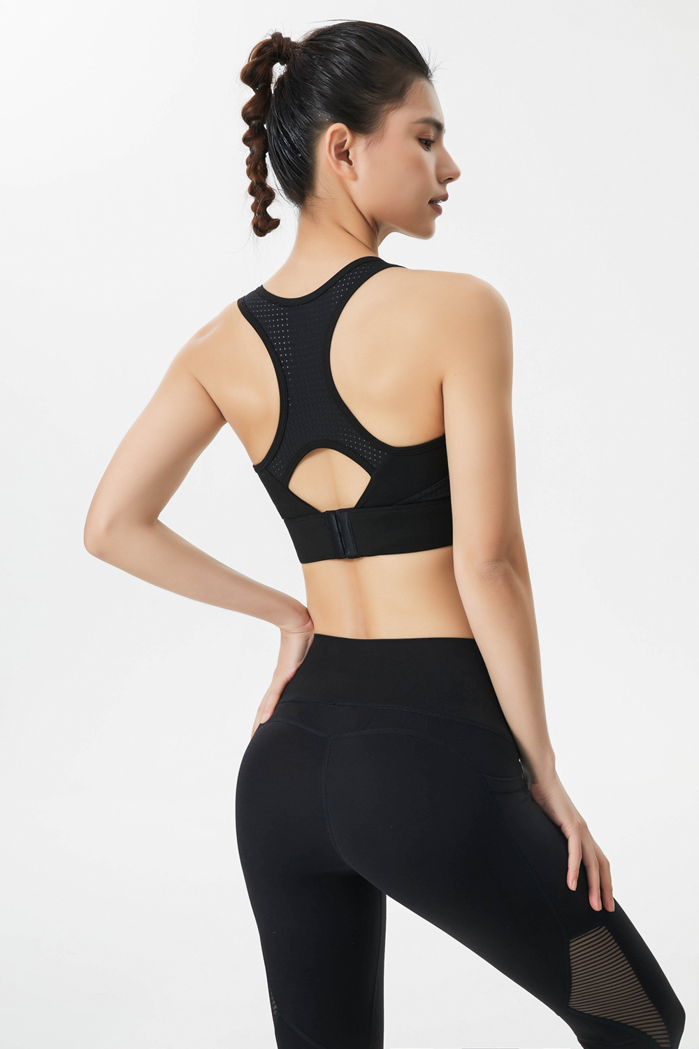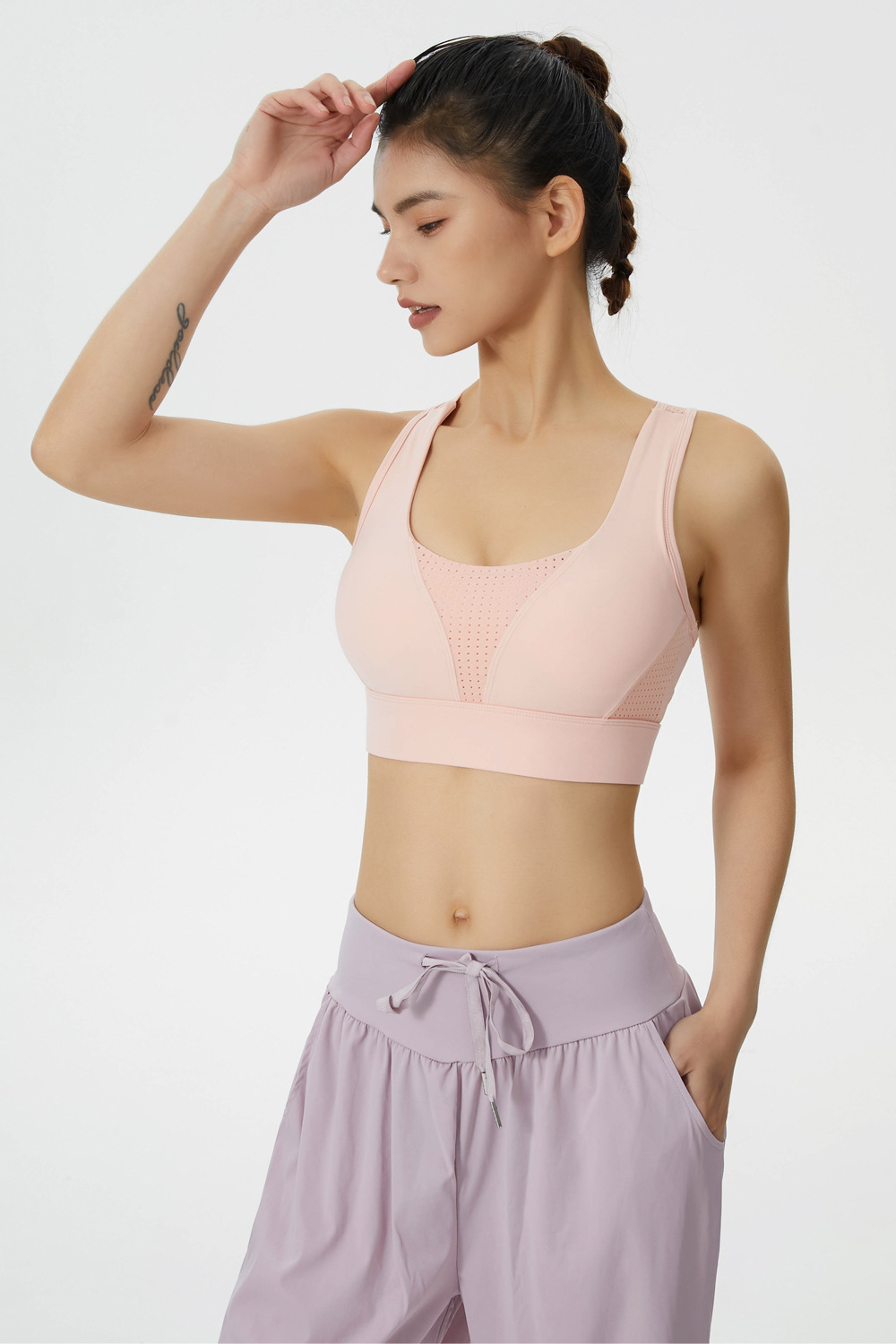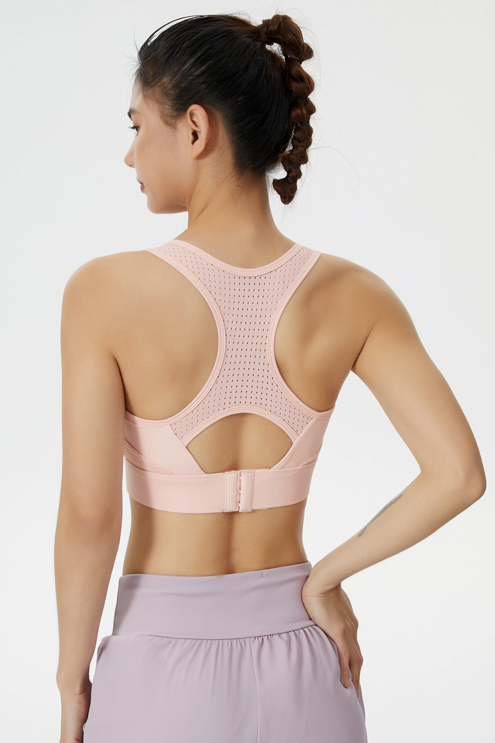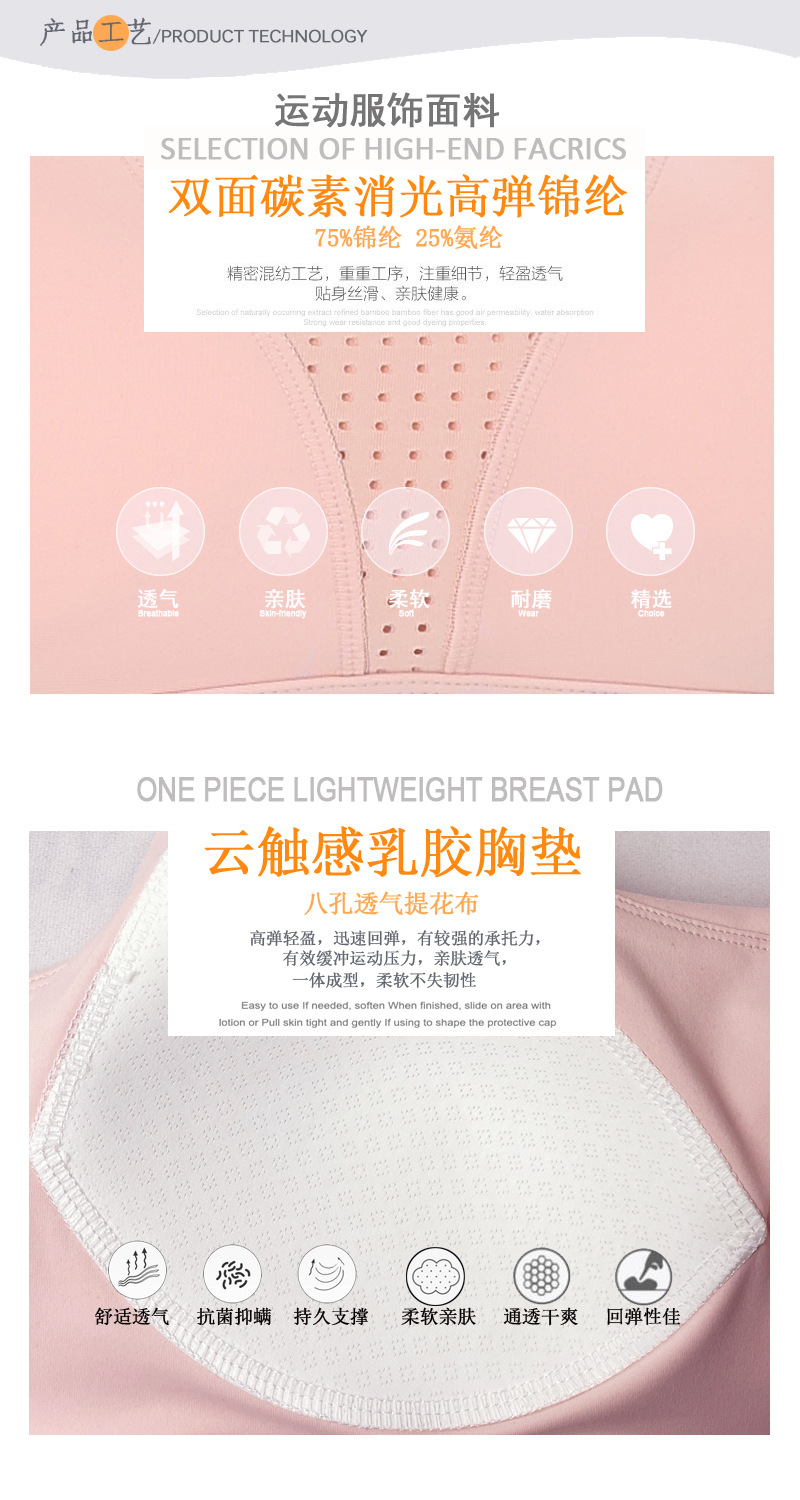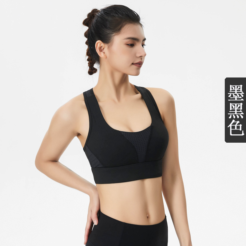 메쉬 스티칭 스포츠 브래지어 원피스 얇은 컵 푸시 업 요가 조끼 충격 필라테스 학생 피트니스 속옷