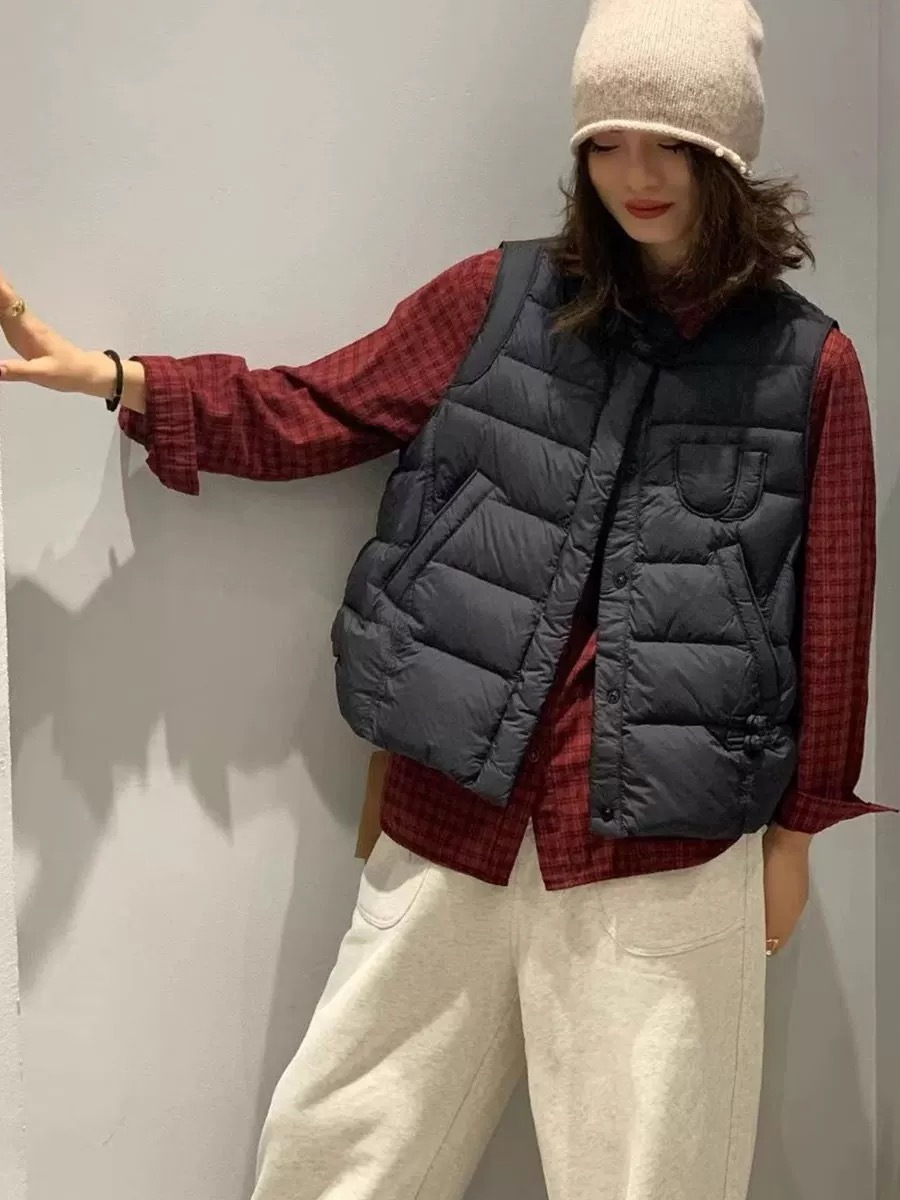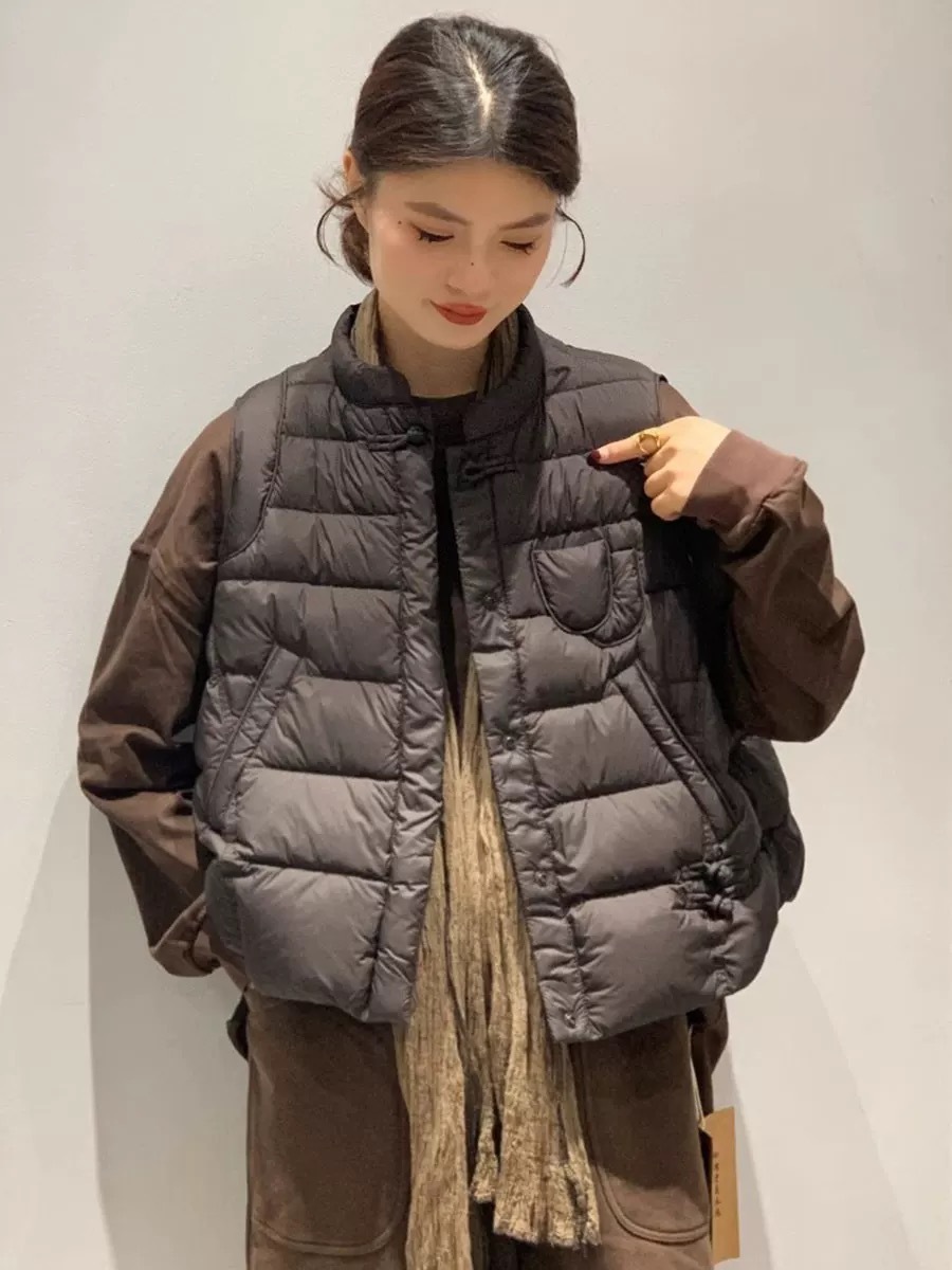 2025 겨울 평후 경량 다운 조끼 여성용 스탠드 칼라 단추 90% 백오리털 조끼 자켓스토어 가기