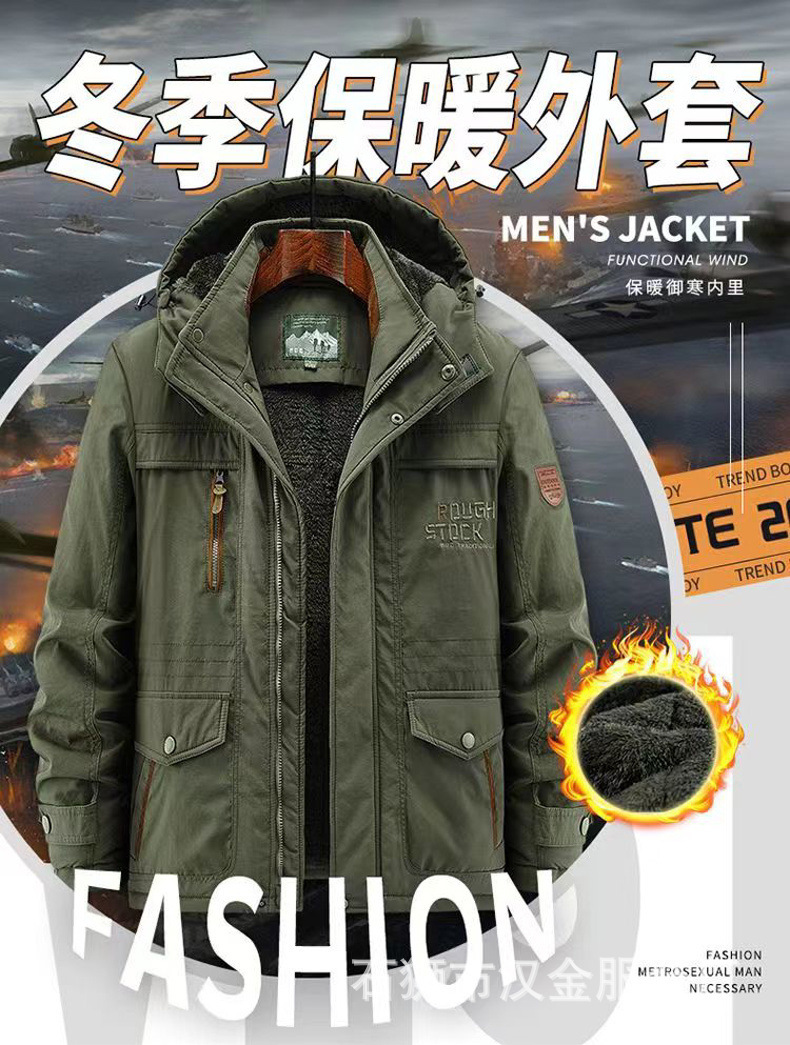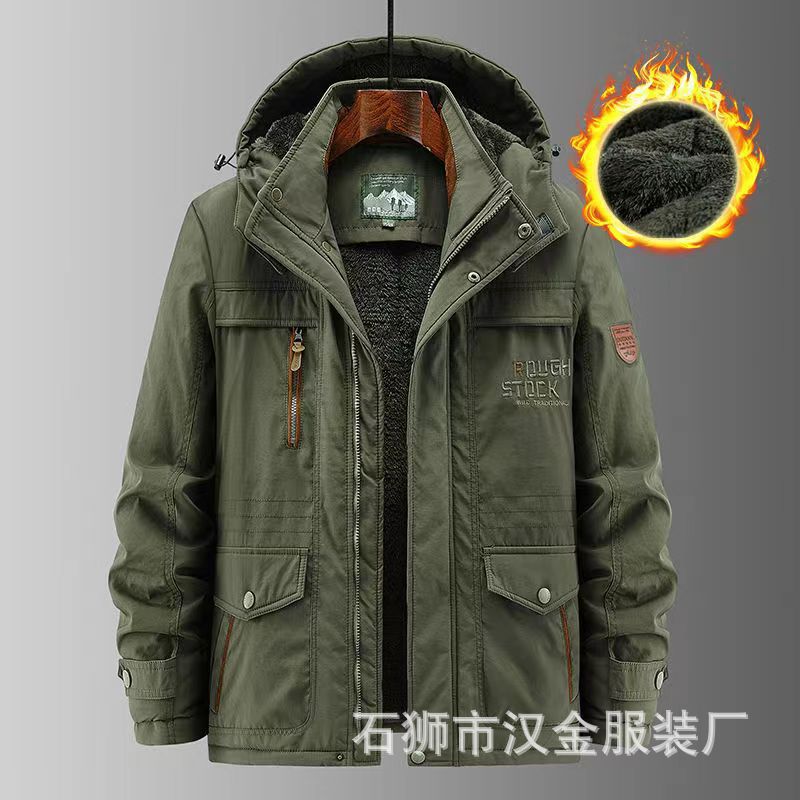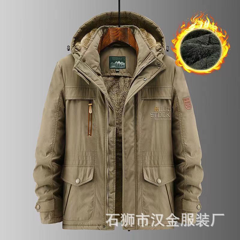 국경 간 플러스 사이즈 재킷 남성용 코튼 패딩 재킷 겨울 기모 두꺼운 대형 코튼 패딩 의류 야외 방풍 멀티 포켓 소박한 옷스토어 가기