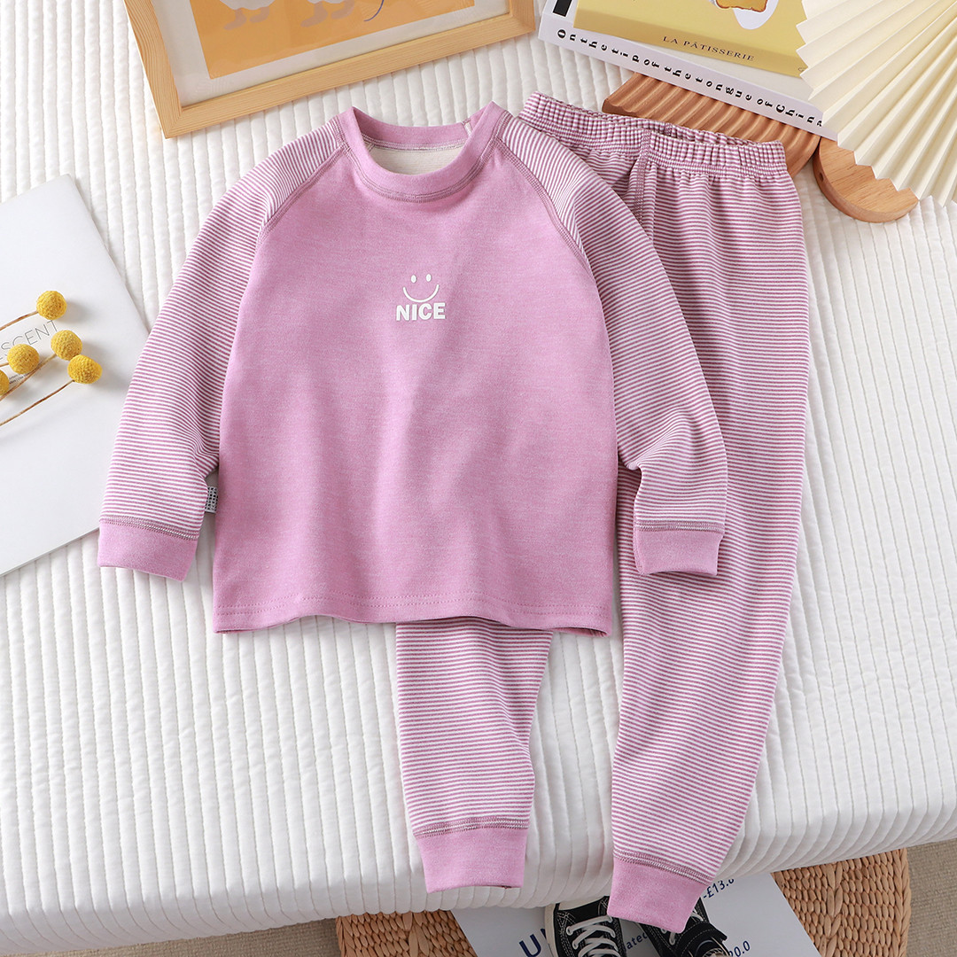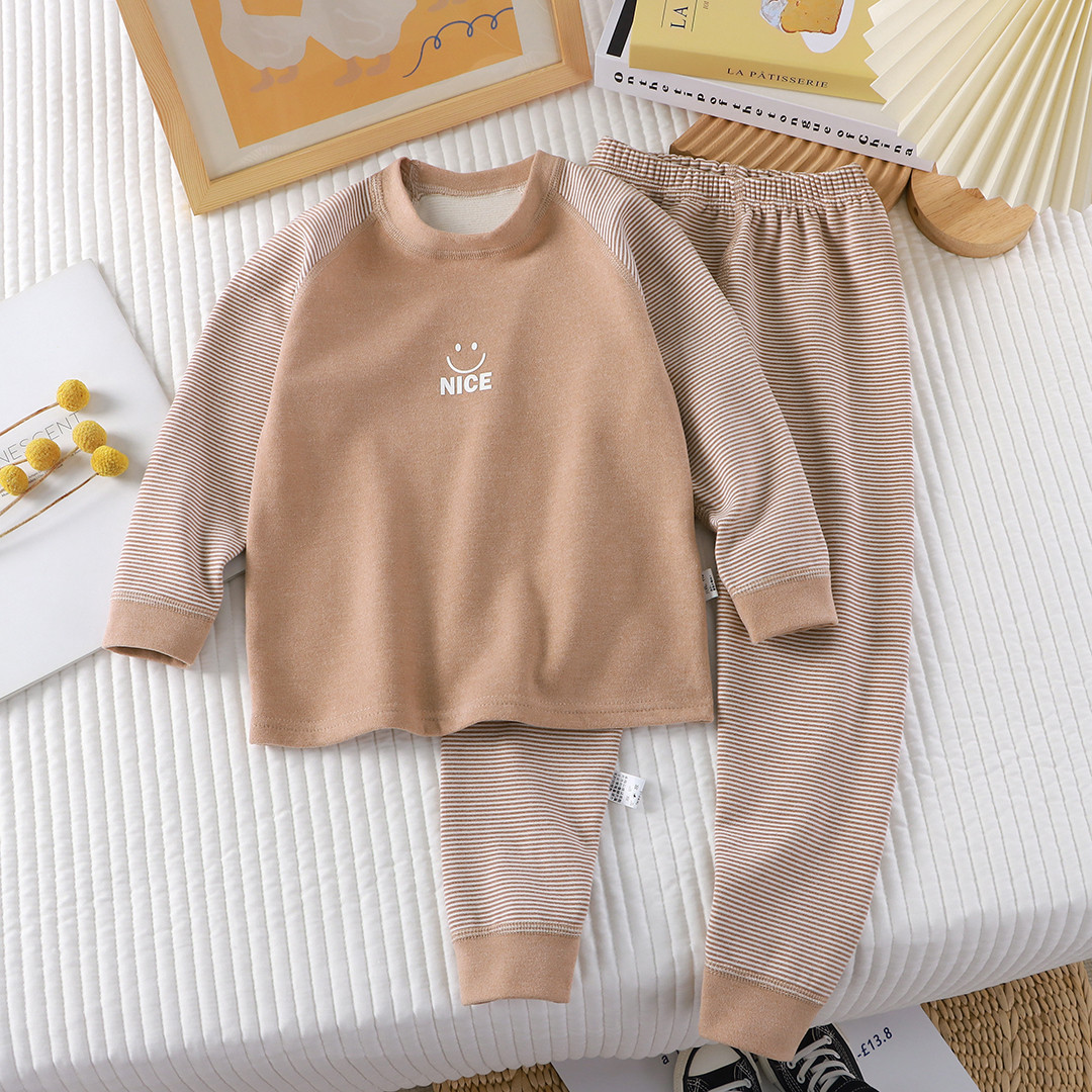 가을과 겨울 어린이 벨벳 속옷 세트 소년 소녀 두꺼운 따뜻한 가을 옷과 가을 바지 홈 의류 뼈없는 기지