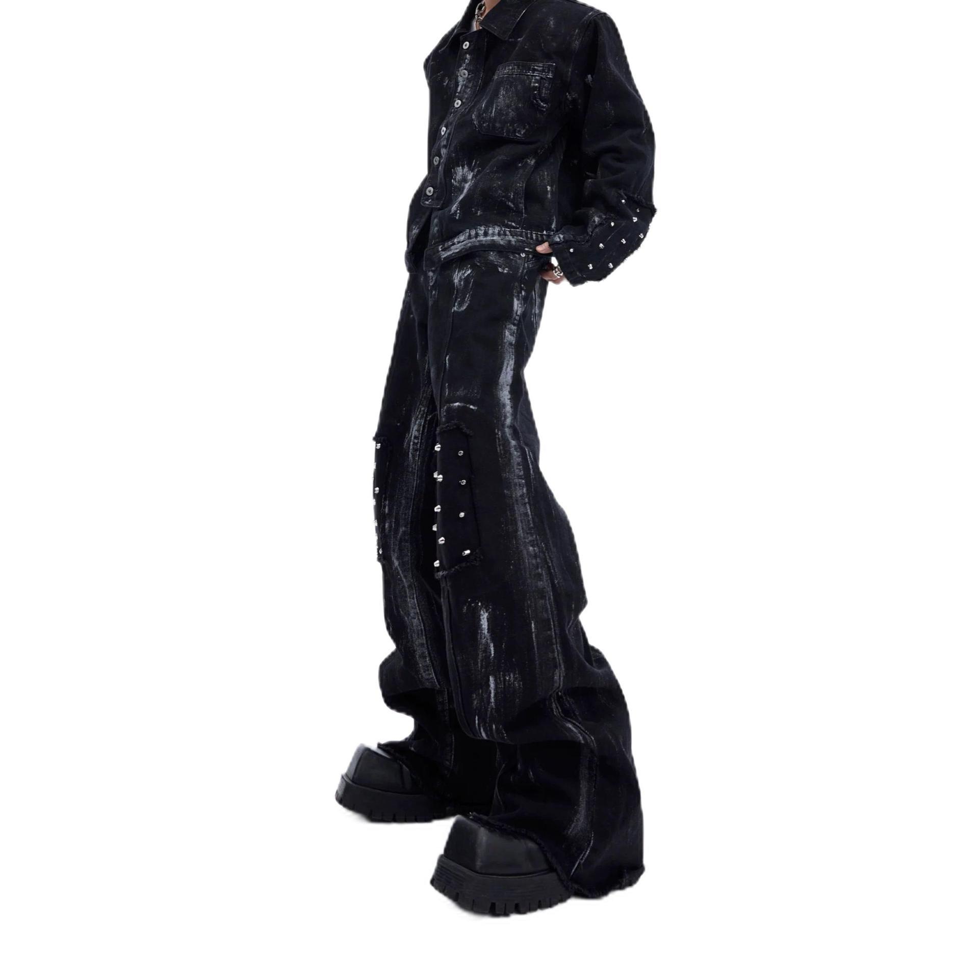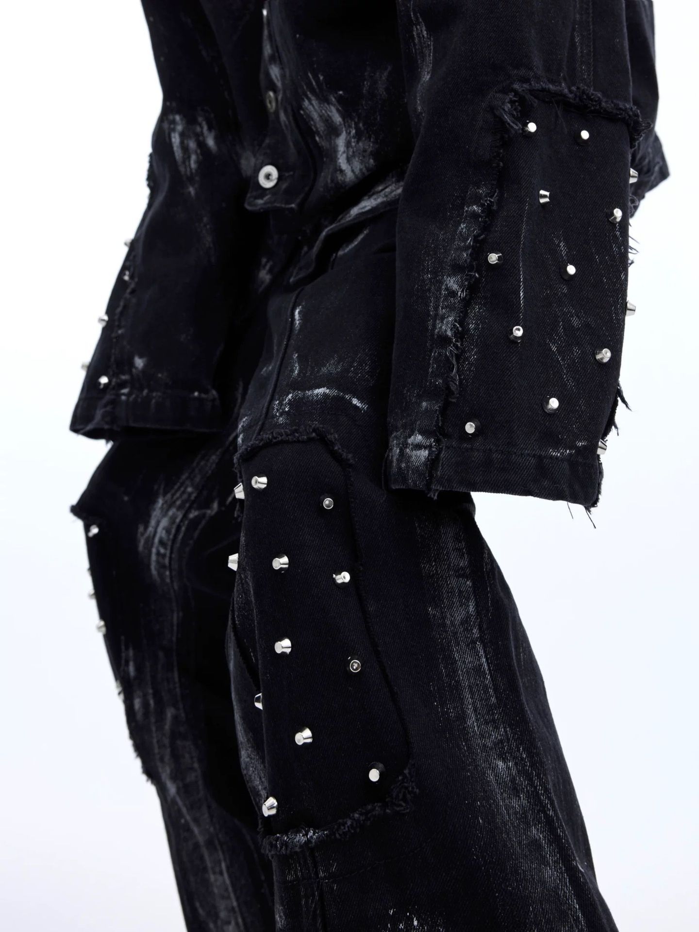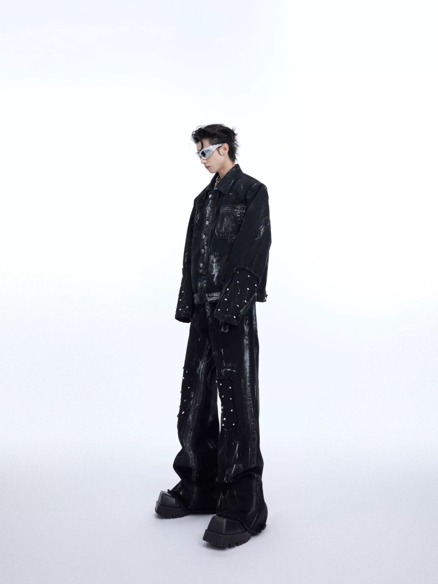 틈새 금속 리벳 디자인 센스 데님 재킷 무거운 손으로 그린 오래된 2024 가을/겨울 재킷 올 매치 2024