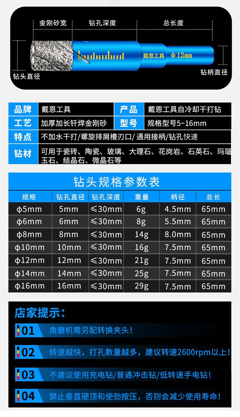 모든 세라믹 세라믹 타일 드릴링 드릴 유리 유리화 타일 타일 대리석 구멍 오프너 물 세라믹이없는 드라이 플레이. 배치스토어 가기
