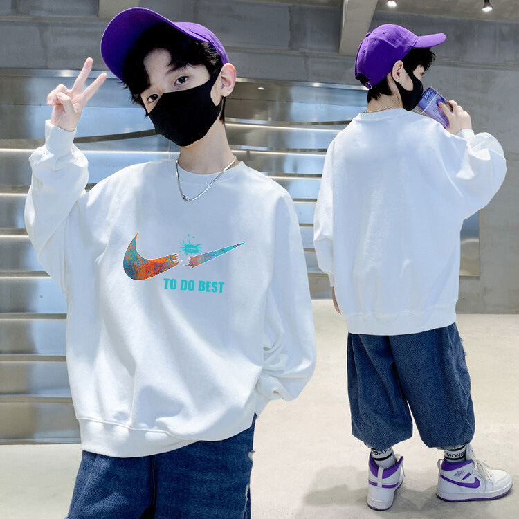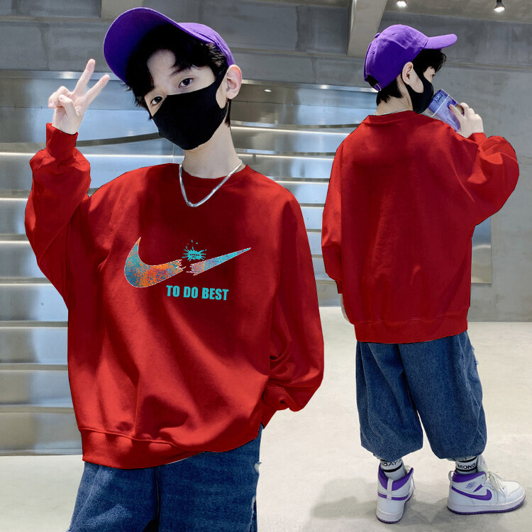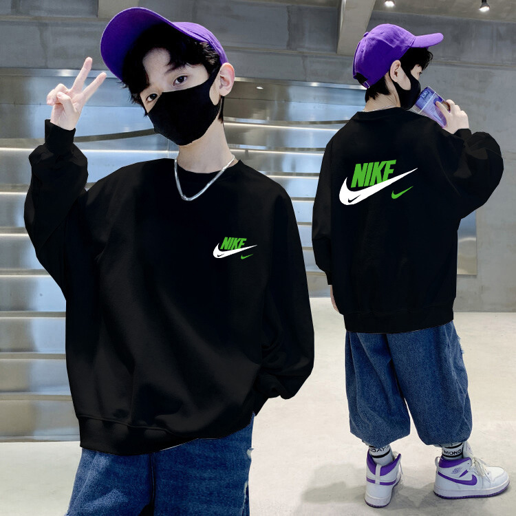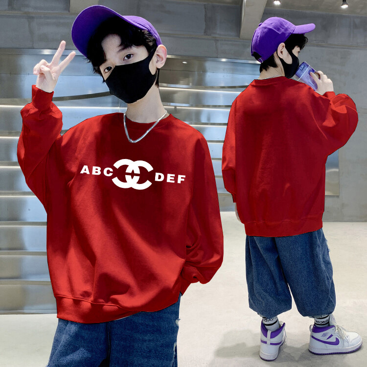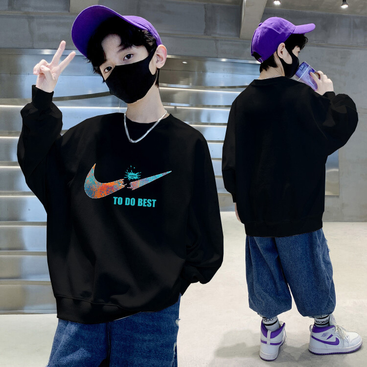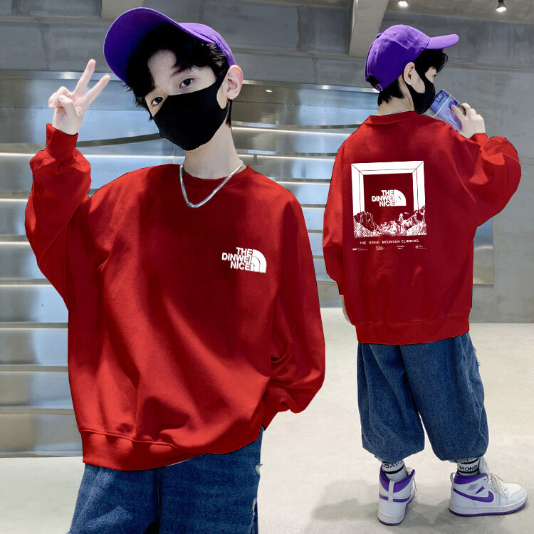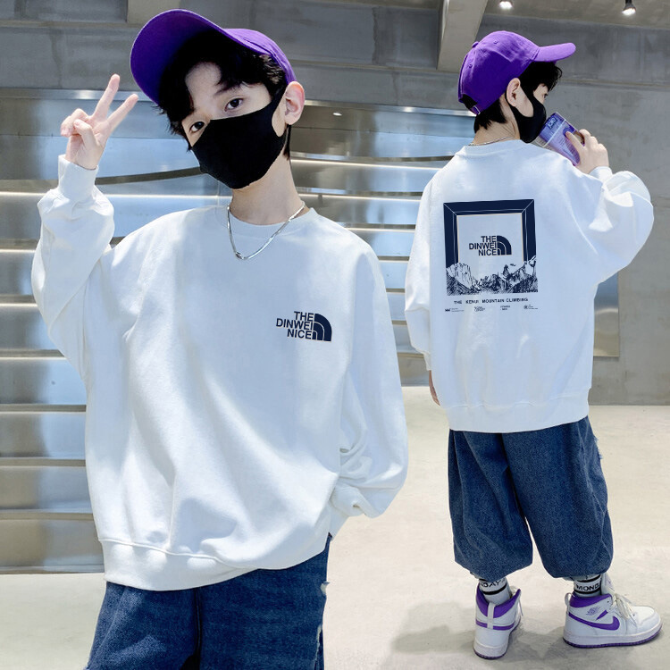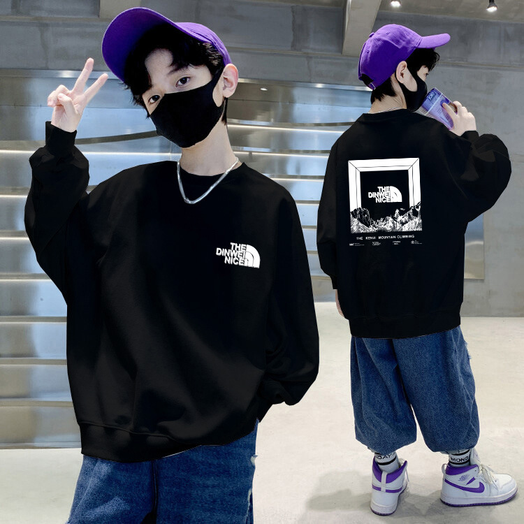 2024 새로운 가을과 겨울 기모 어린이 크루 넥 스웨터 소년의 느슨한 캐주얼 탑 중대형 아동베이스 셔츠 트렌디스토어 가기