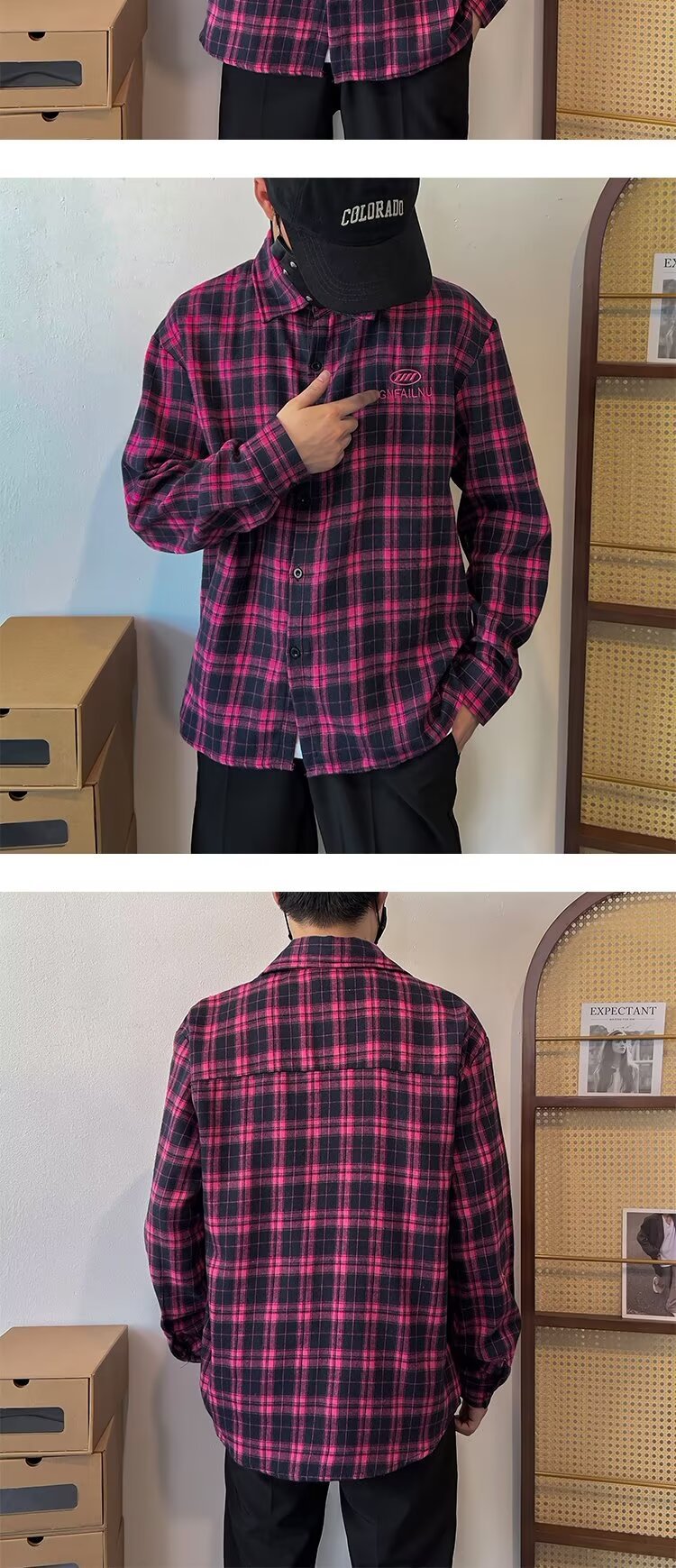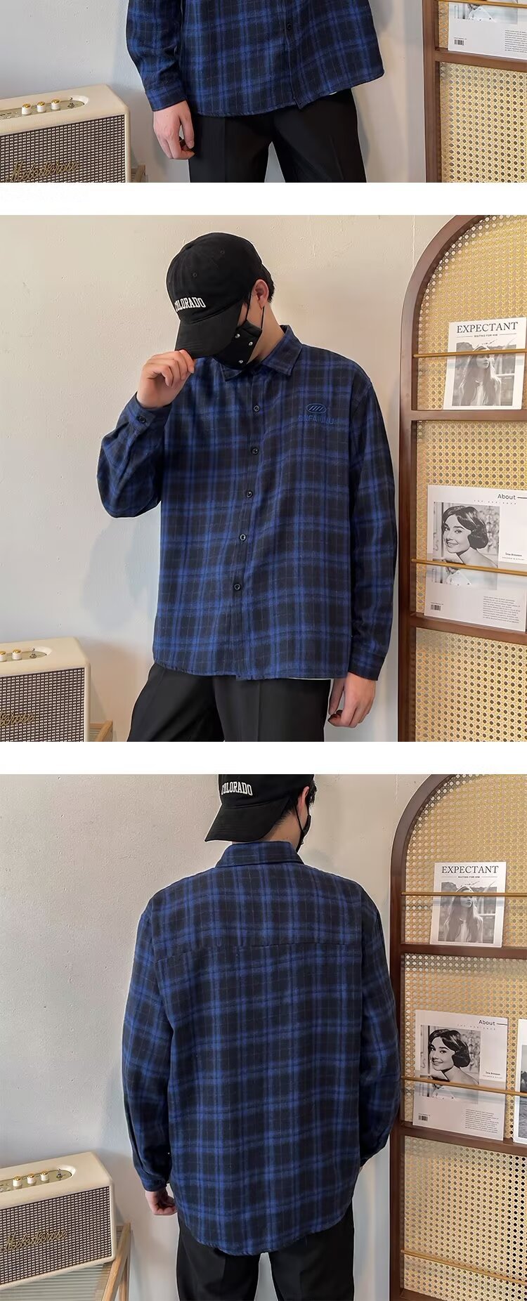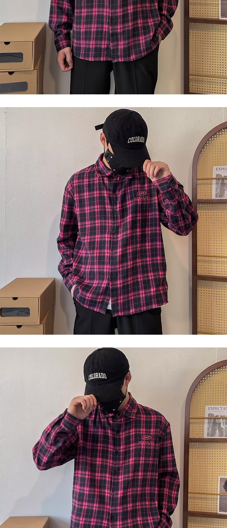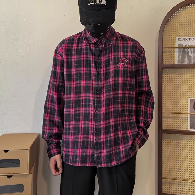 2024 아메리칸 스타일 레트로 타이-다이 체크 셔츠 남성용 긴 소매 봄과 가을 패션 브랜드 느슨한 캐주얼 셔츠 재킷스토어 가기