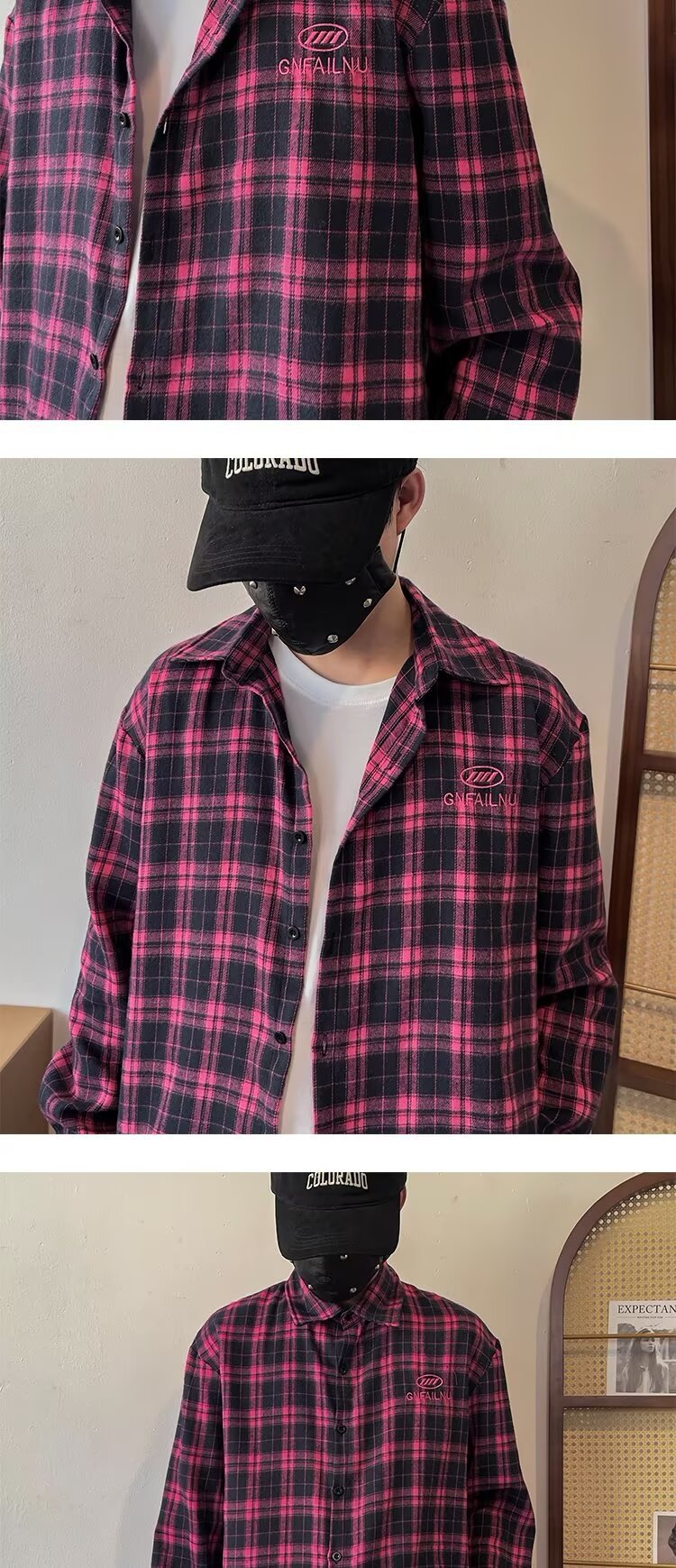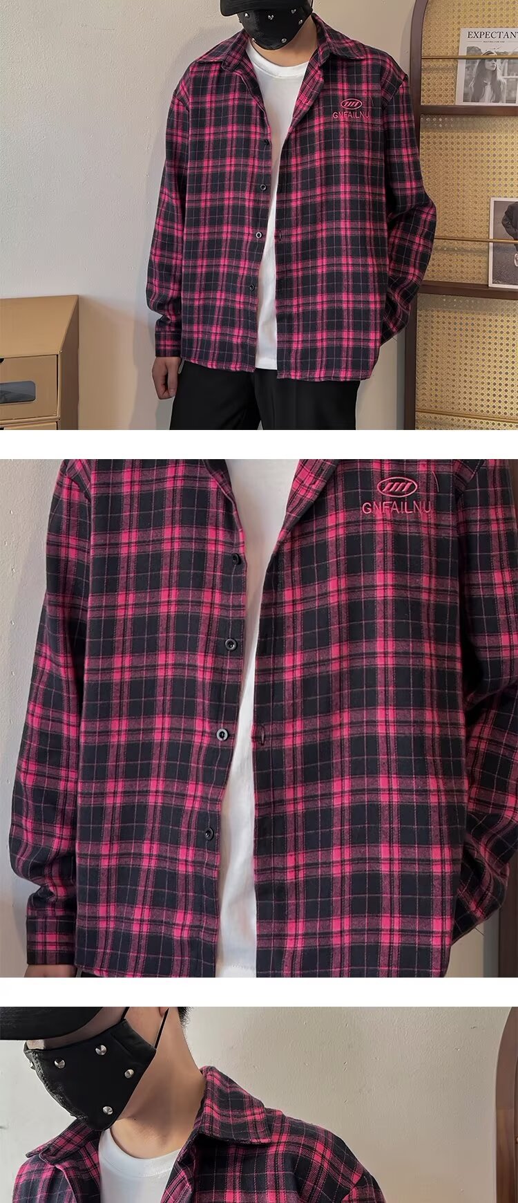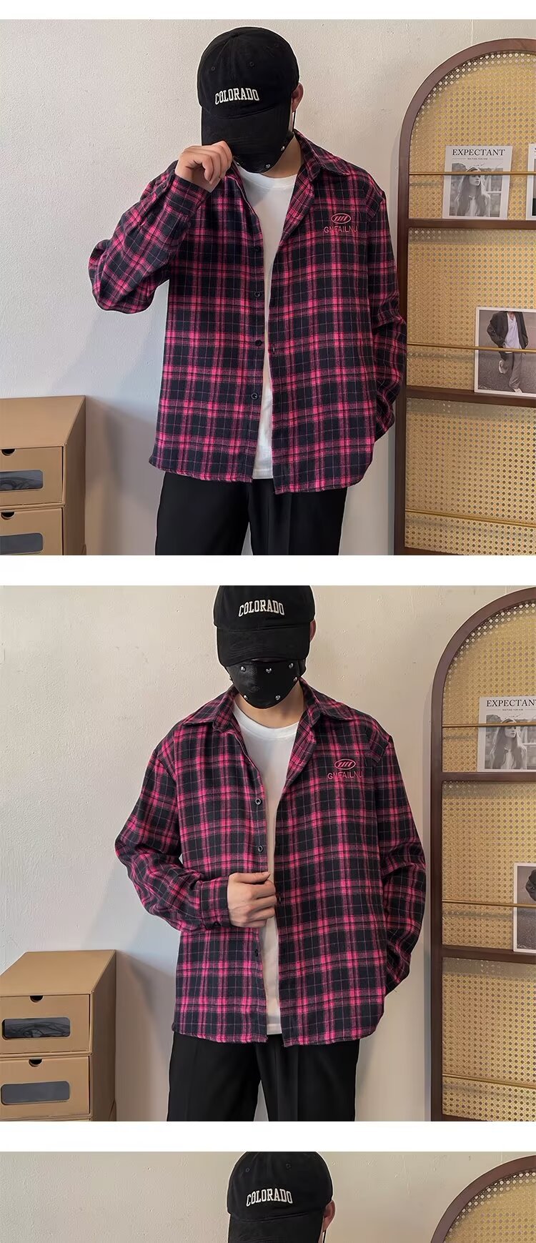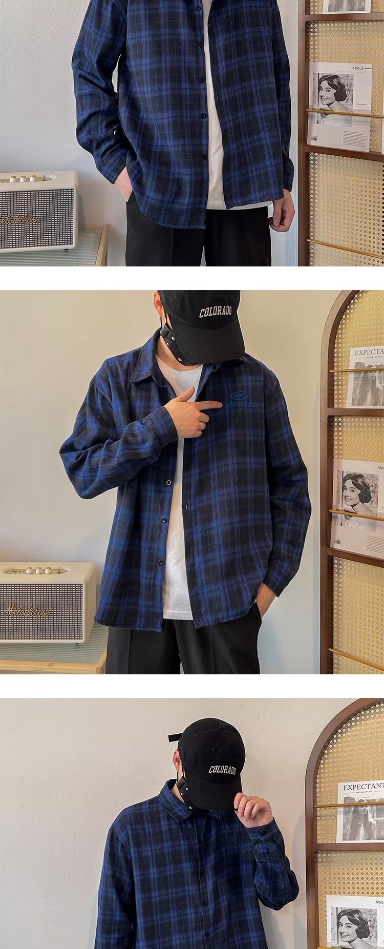 2024 아메리칸 스타일 레트로 타이-다이 체크 셔츠 남성용 긴 소매 봄과 가을 패션 브랜드 느슨한 캐주얼 셔츠 재킷스토어 가기