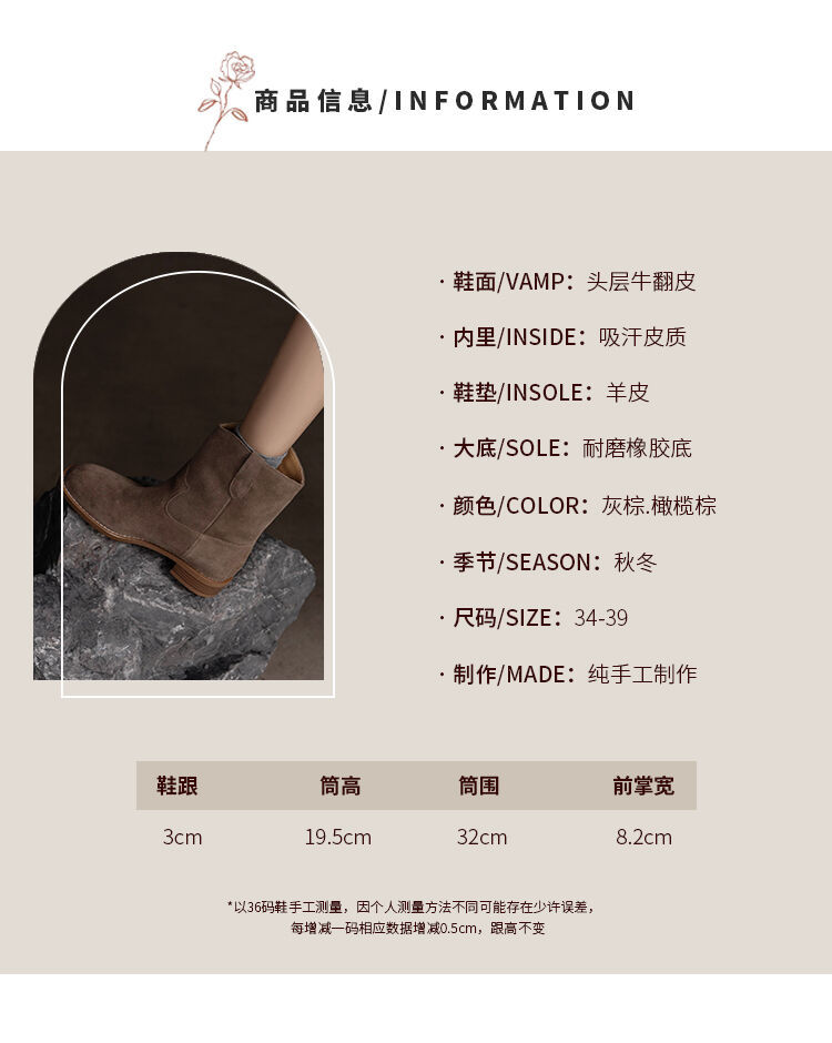 쇼트 부츠 여성용 라운드 헤드 두꺼운 미드 힐 와이드 부츠 가을 뉴 슬리브 솔리드 컬러 소 플립 가죽 한국 스타일 쇼트 부츠 여성 싱글 부츠스토어 가기