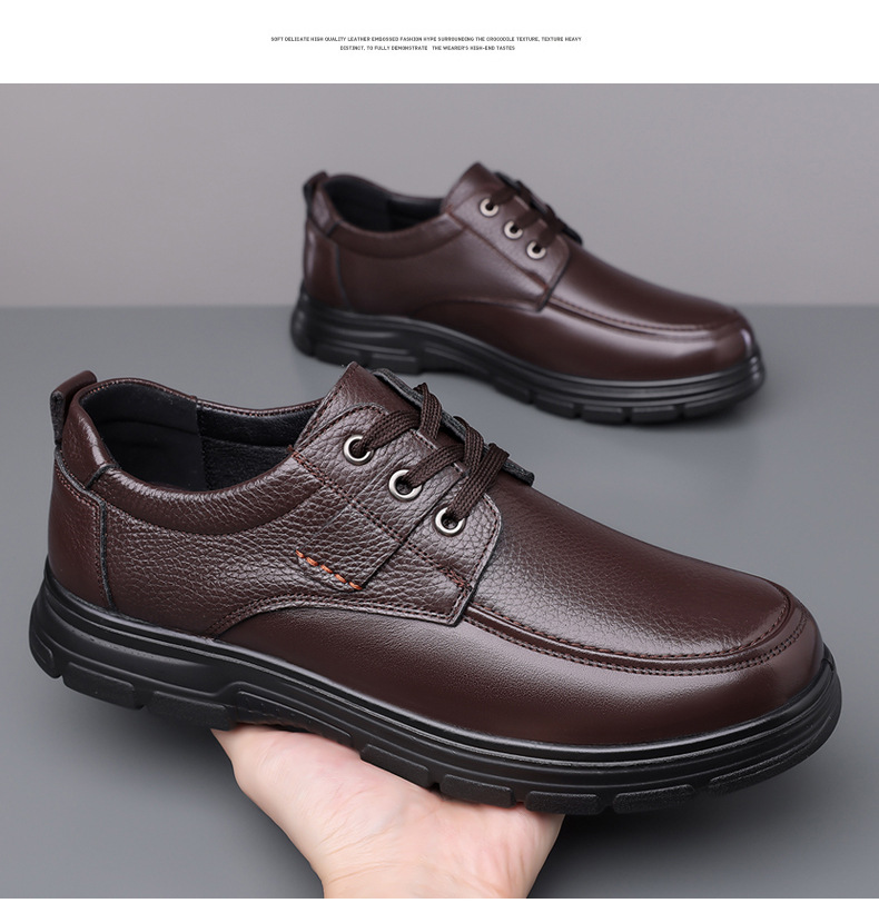남성 신발 2025 새로운 스타일 정품 가죽 남성 고급 비즈니스 캐주얼 가죽 신발 남성 유행 1 층 소 가죽 중년 아빠 신발스토어 가기