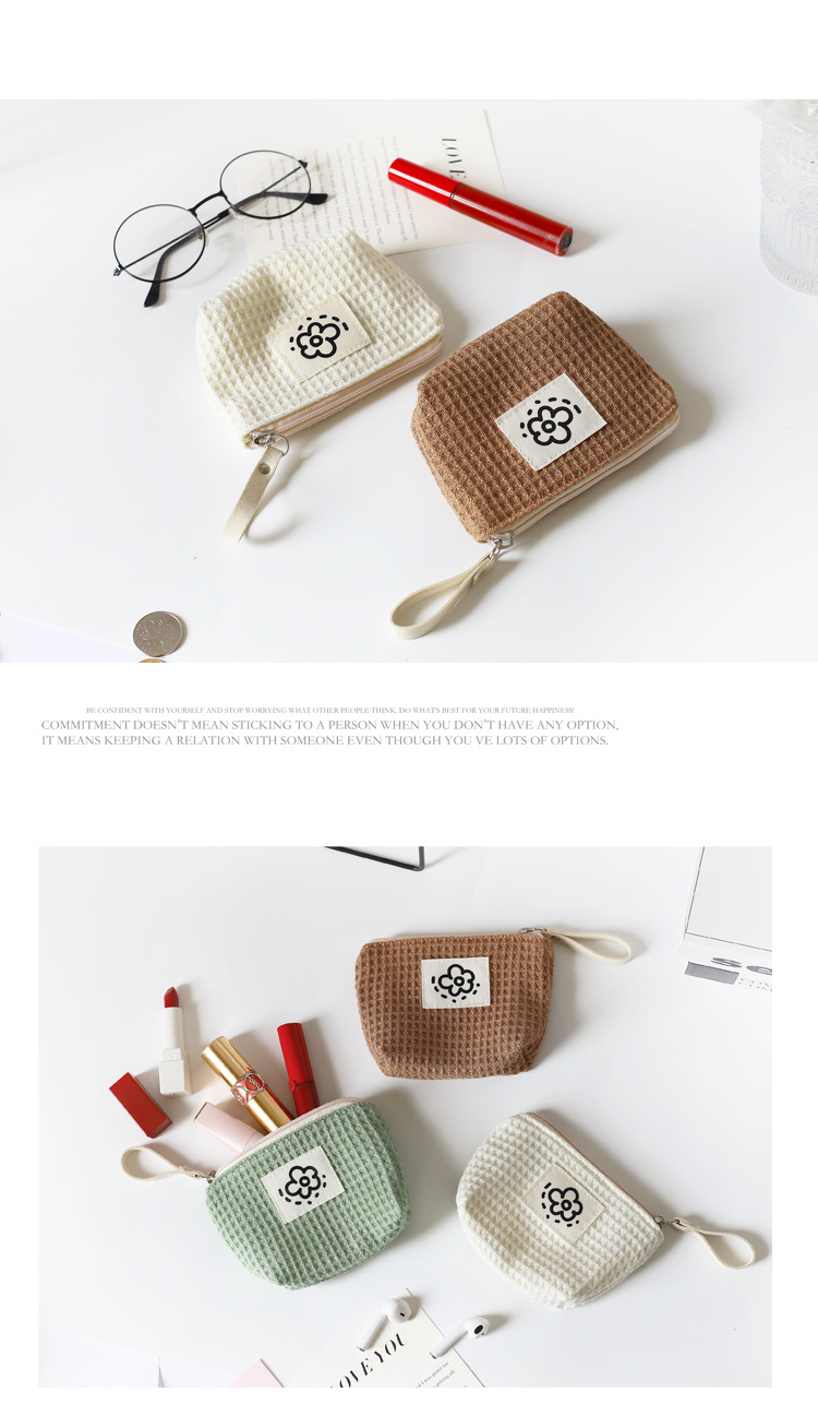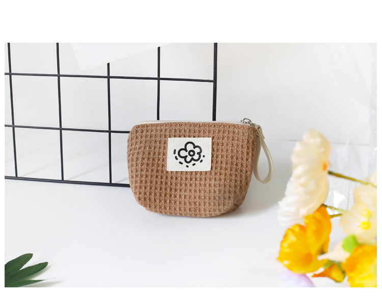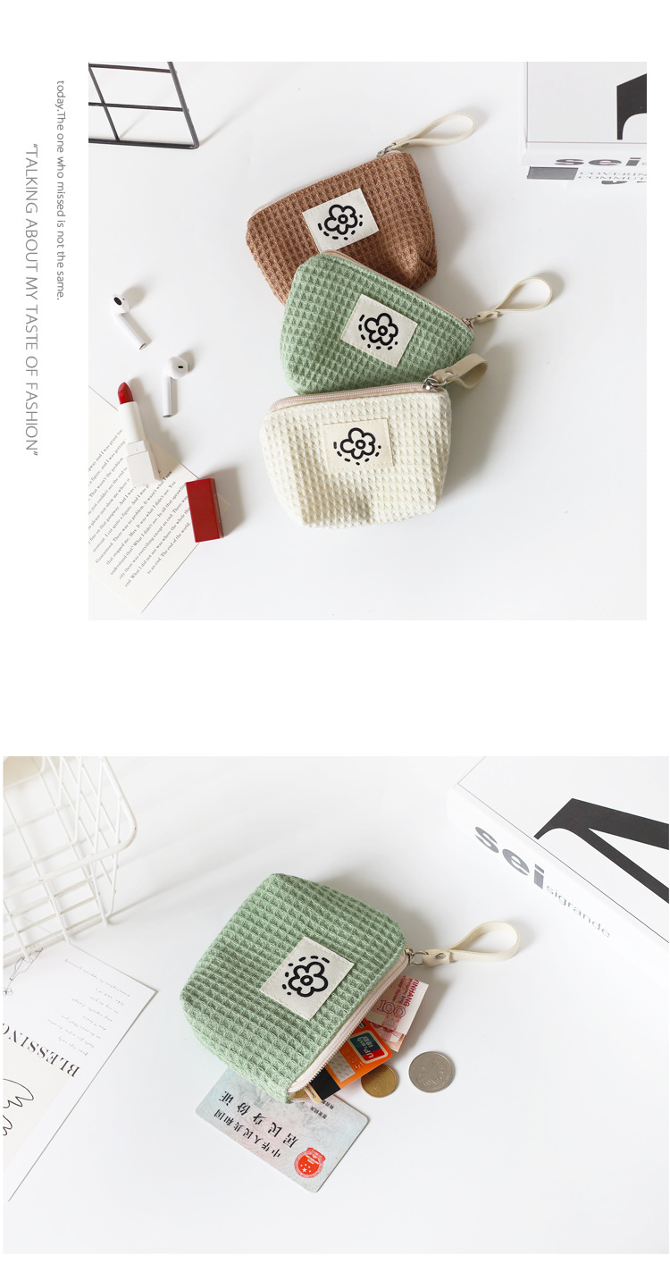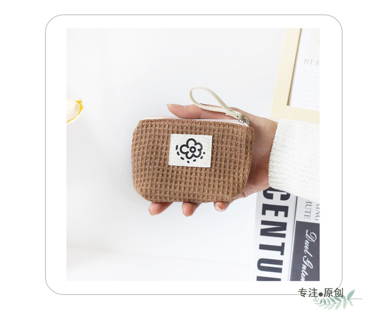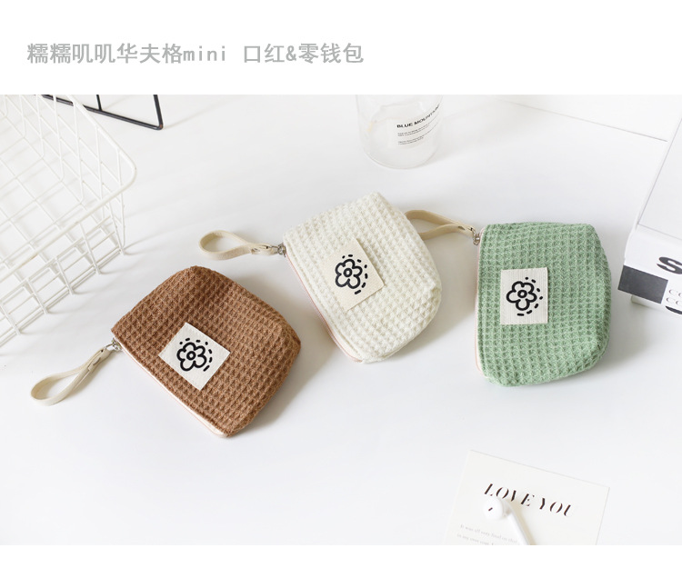일본 귀여운 간단한 와플 동전 지갑 여성용 소형 휴대용 손목 가방 여름 꽃 립스틱 보관 가방