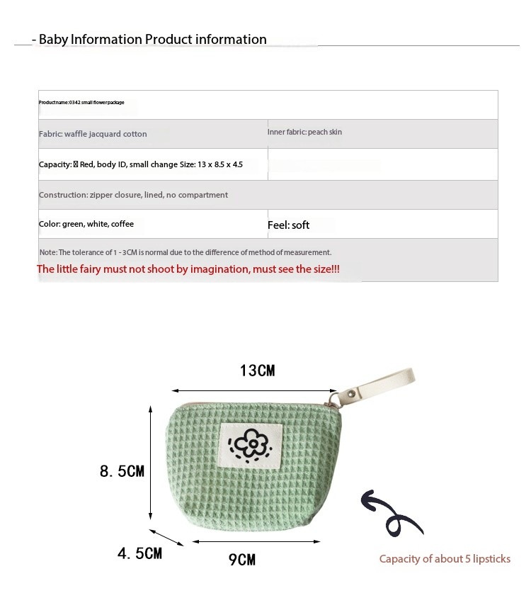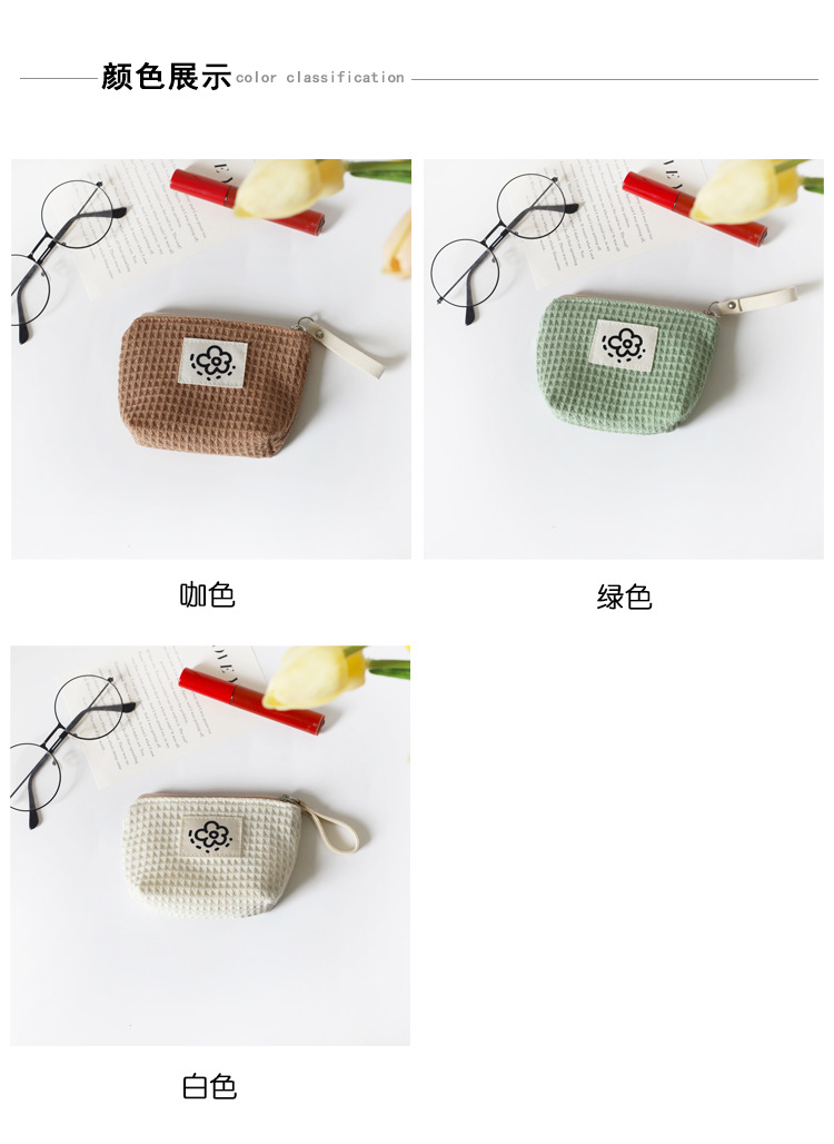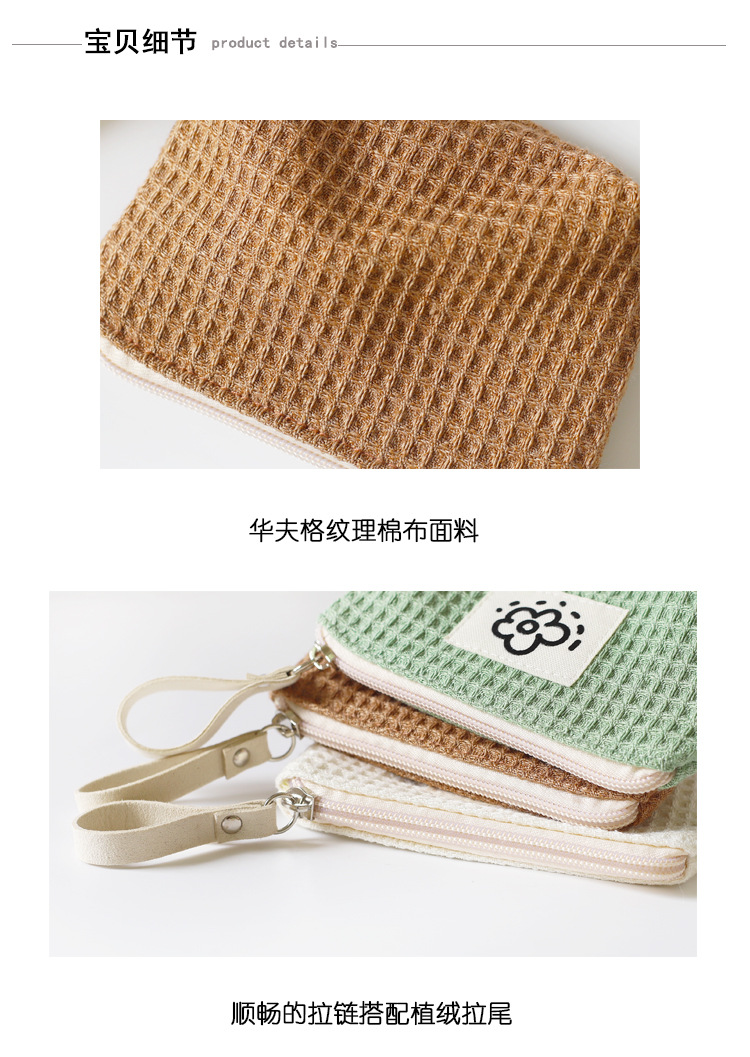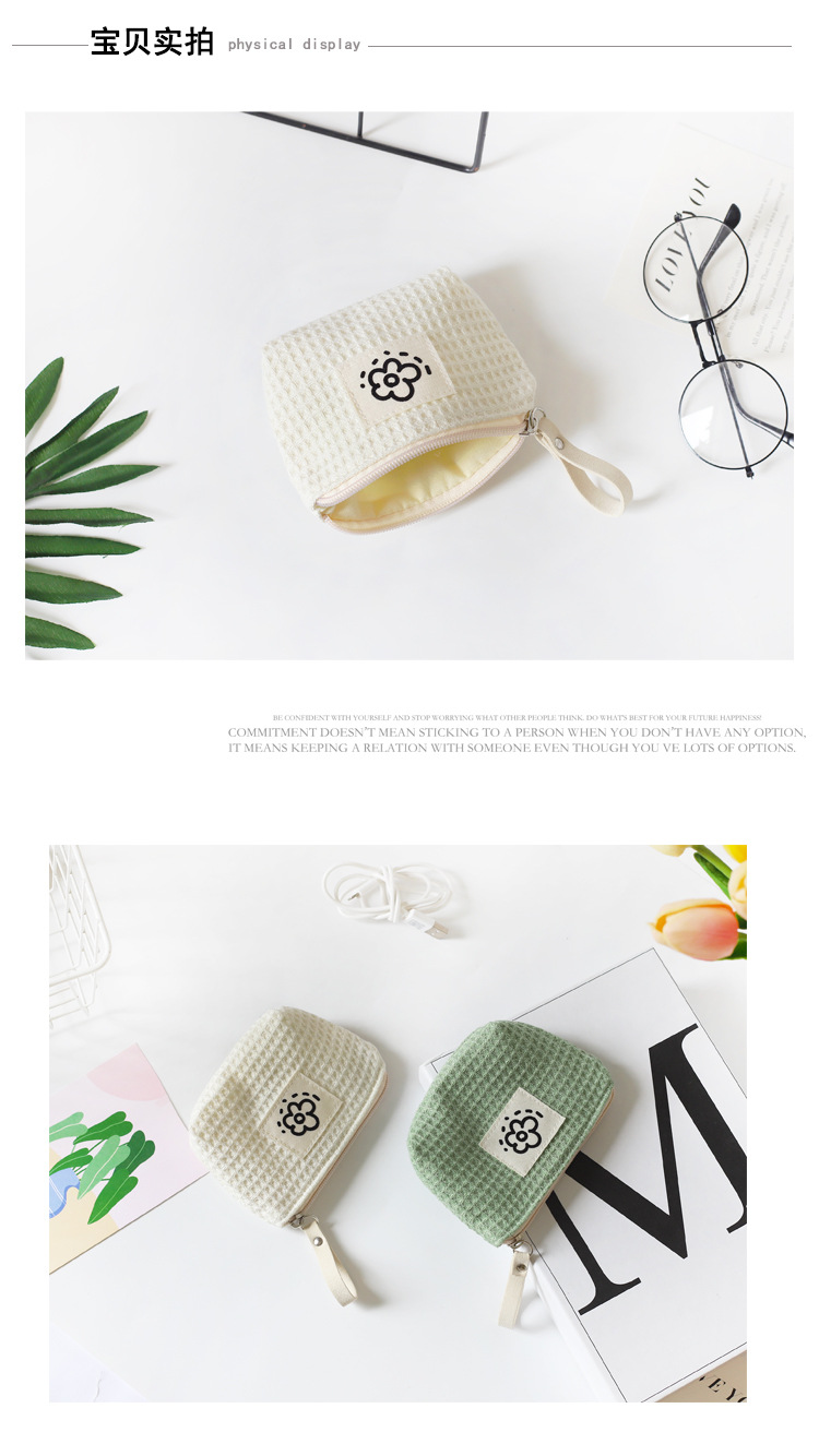 일본 귀여운 간단한 와플 동전 지갑 여성용 소형 휴대용 손목 가방 여름 꽃 립스틱 보관 가방