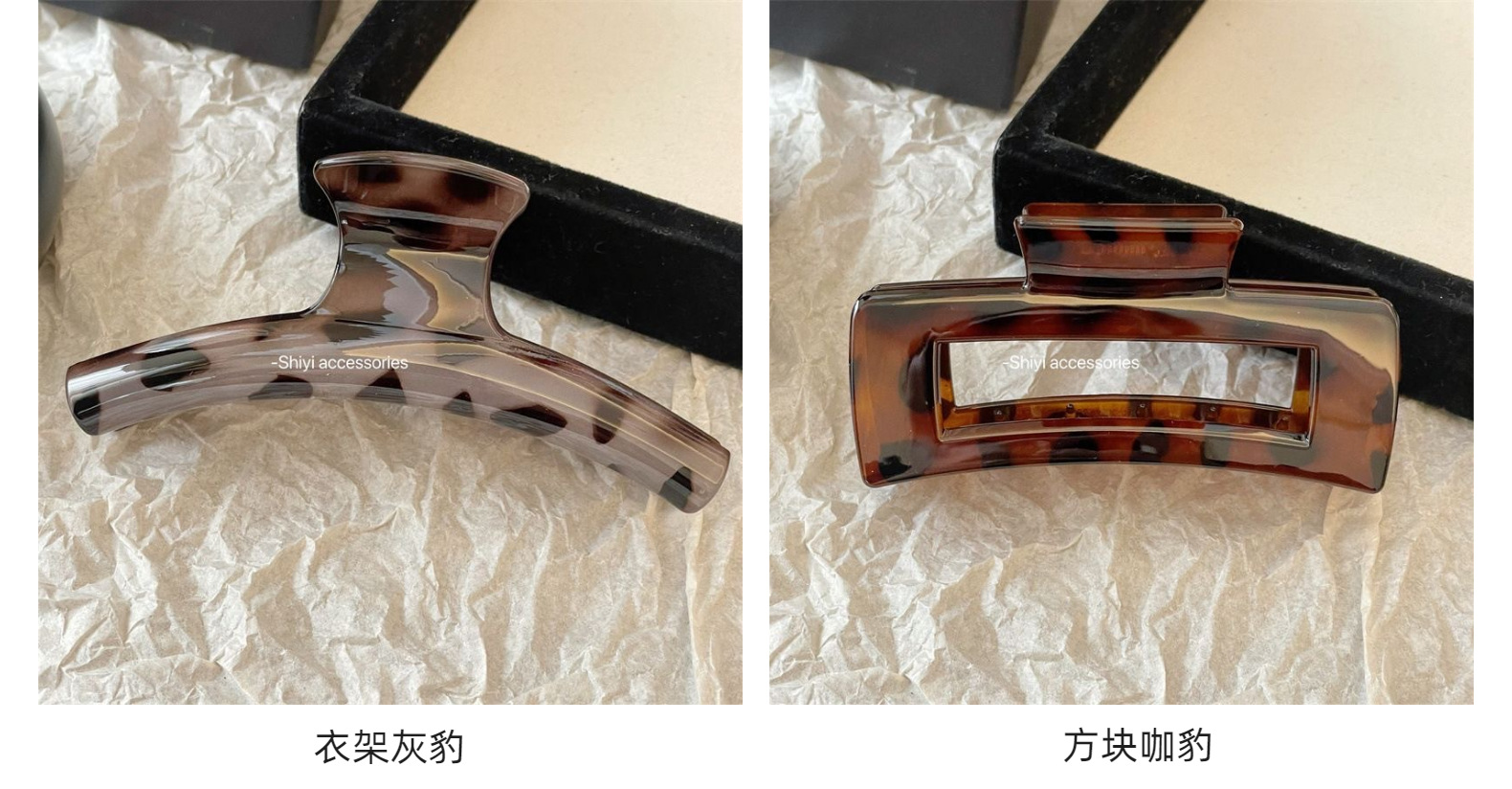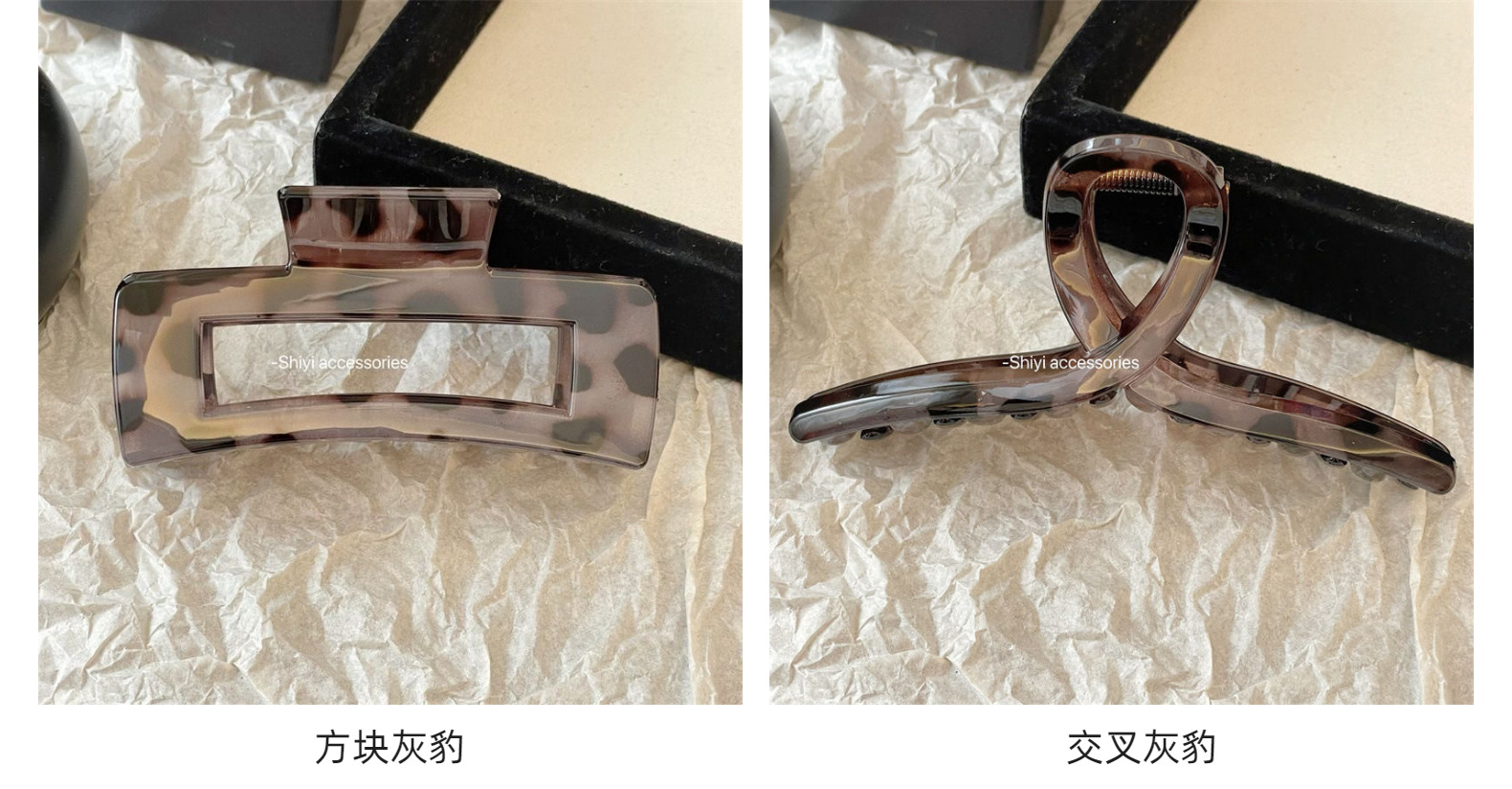 • CL023#회색 레오파드 패턴 집게핀 - 사각