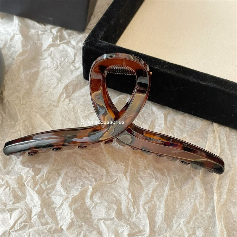 우아한 올 매치 레오파드 무늬 클립 대형 헤어핀 여성용 2024 새로운 하이 엔드 센스 머리 뒷머리 상어 클립 헤드웨어스토어 가기