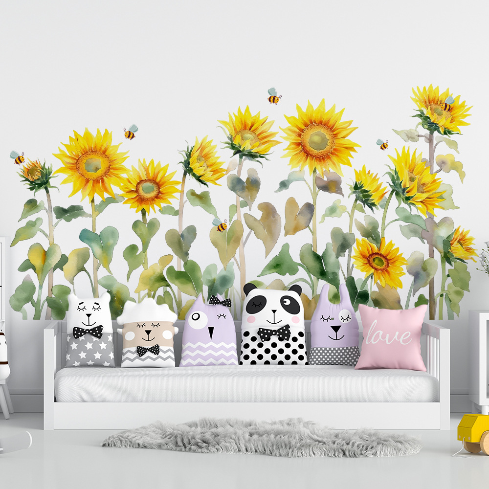 Yiyao DD3919 간단한 분위기 해바라기 인쇄 조합 벽지 방 배경 벽 장식 자체 접착 스티커