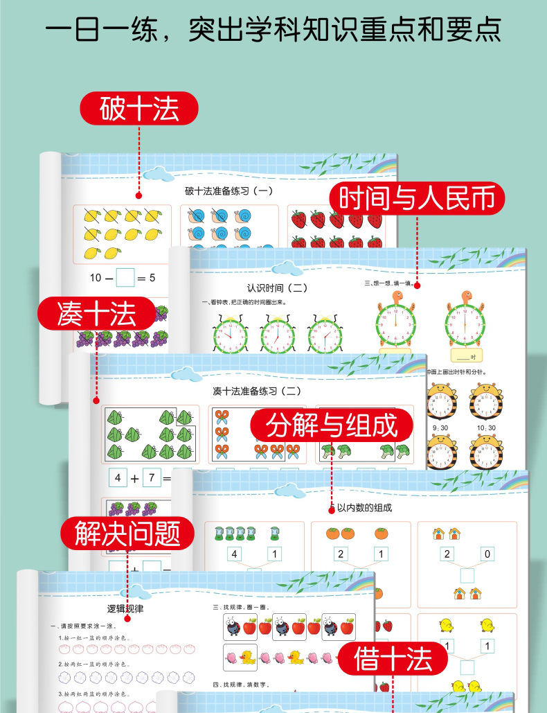 유치원 디지털 추적 빨간 중국 병음 운동 책은 문제를 해결하기 위해 10 가지 방법을 함께 빌려스토어 가기