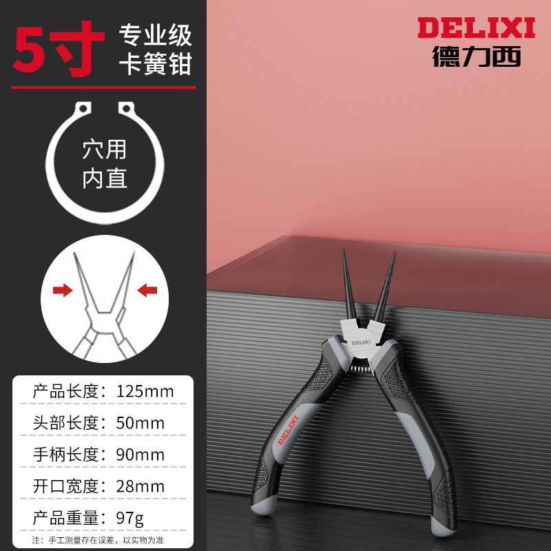 • Delixi 5inch 전문가급 서클립 플라이어 [경혈용 내부 직선]