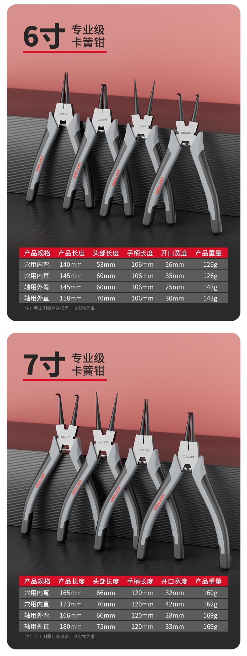 • Delixi 7inch 전문가급 서클립 플라이어 [샤프트용 외부 직선]