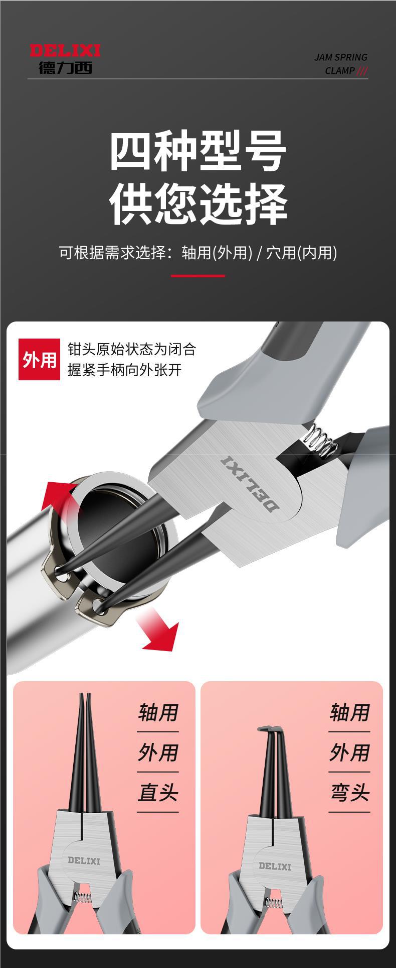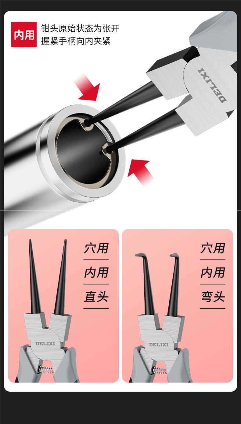 • Delixi 5inch 전문가급 서클립 플라이어 [샤프트용 외부 직선]