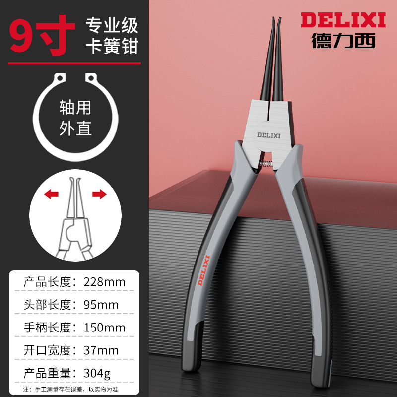 • Delixi 9inch 전문가급 서클립 플라이어 [샤프트용 외부 직선]
