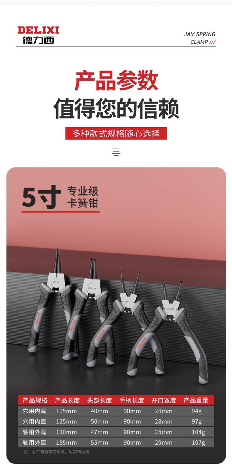 • Delixi 5inch 전문가급 서클립 플라이어 [경혈용 내부 굽힘]
