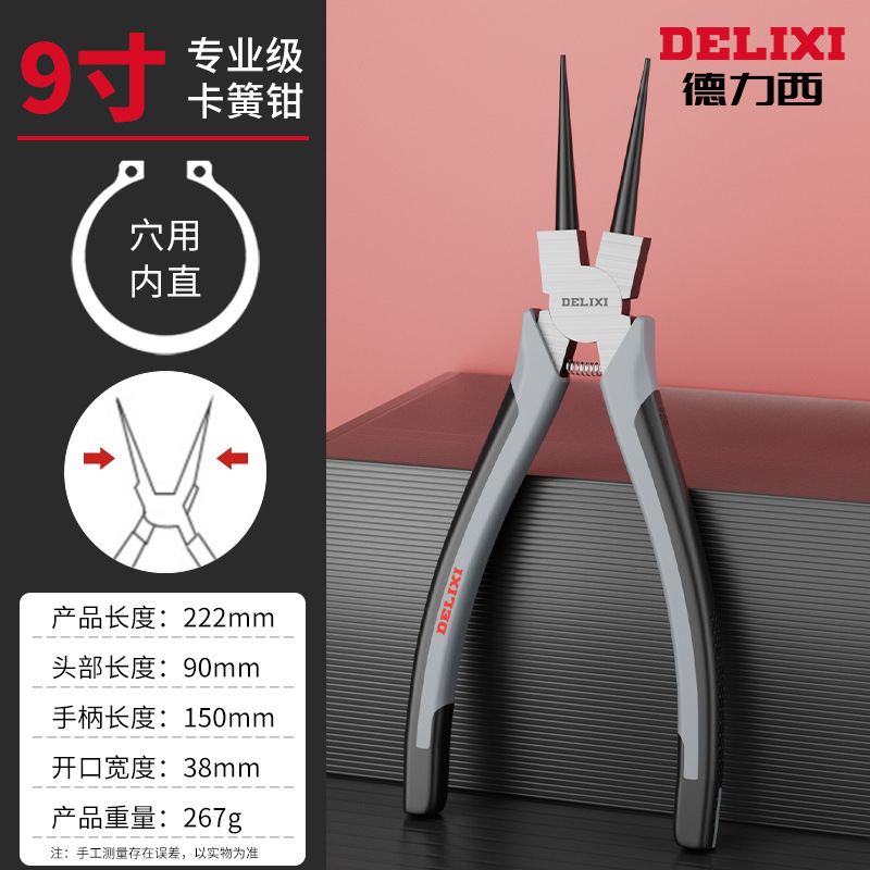 • Delixi 9inch 전문가급 서클립 플라이어 [경혈용 내부 직선]