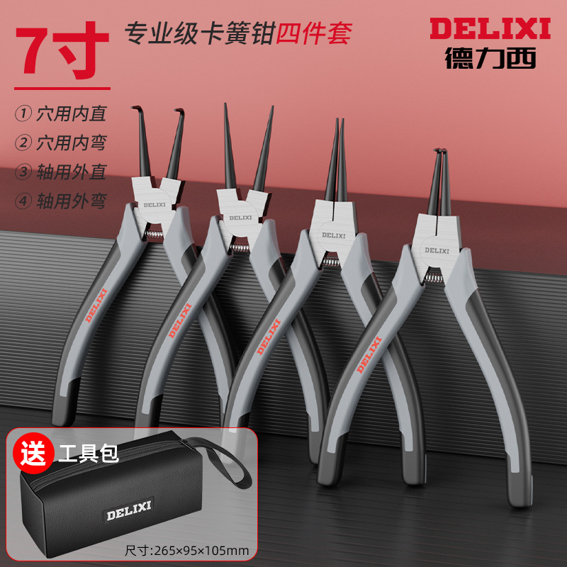 • Delixi 7inch 전문가급 서클립 플라이어 4종 세트 [무료 보관 가방]