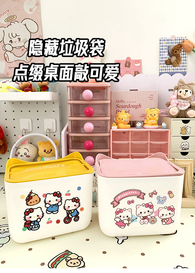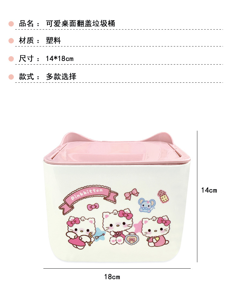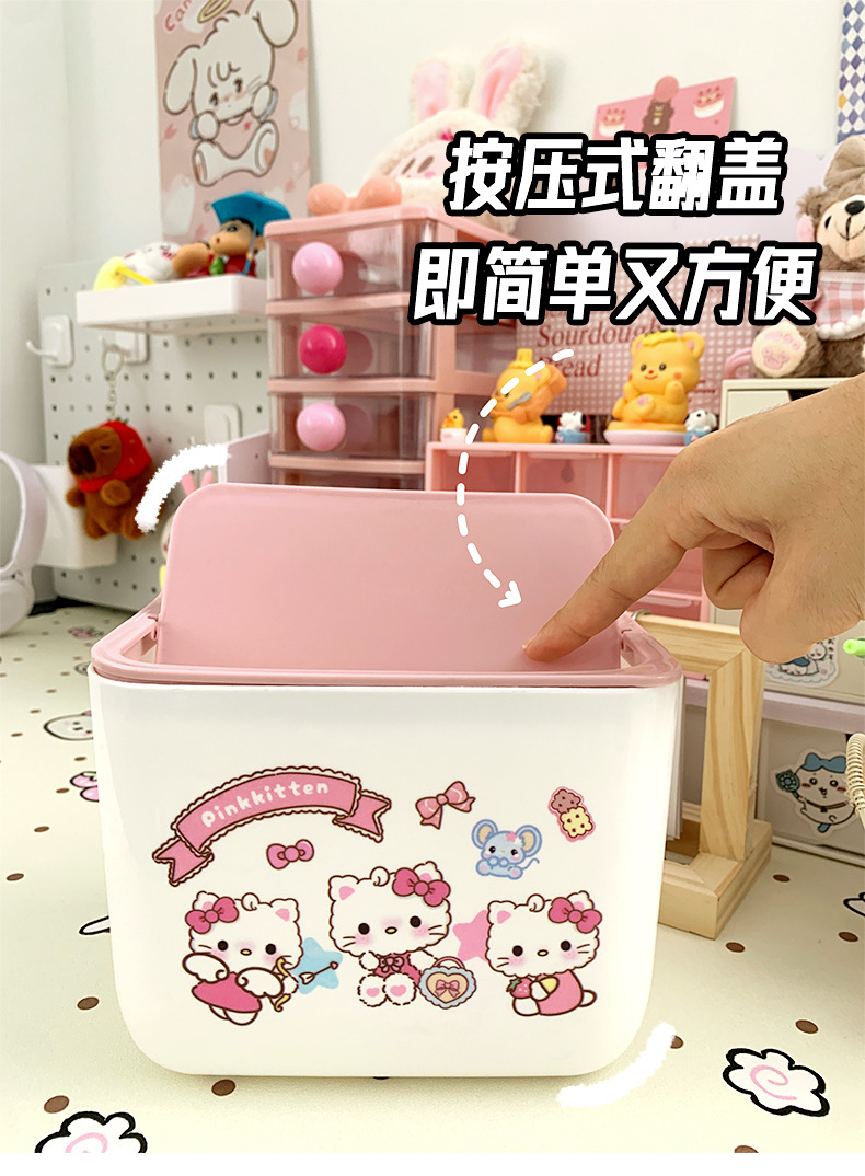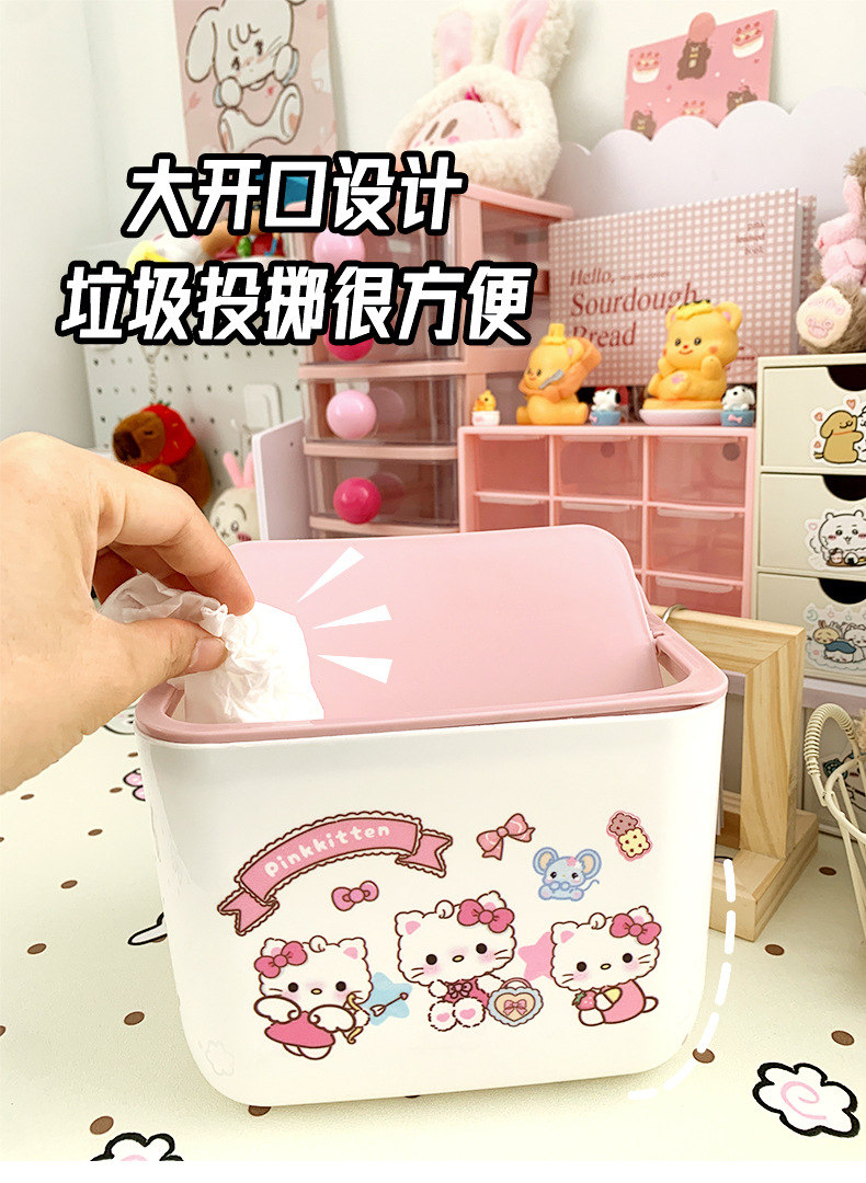 KT 만화 데스크톱 휴지통, 가정용 미니 스몰 사이즈 학생 기숙사 책상 대용량 휴지통스토어 가기