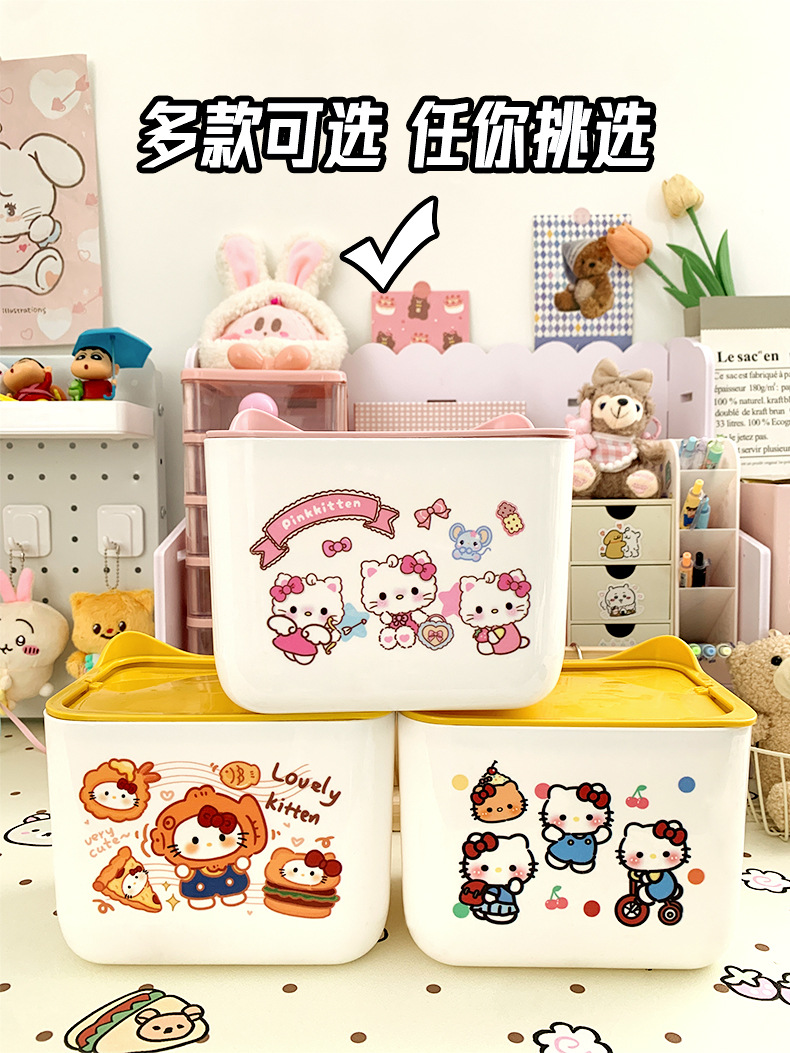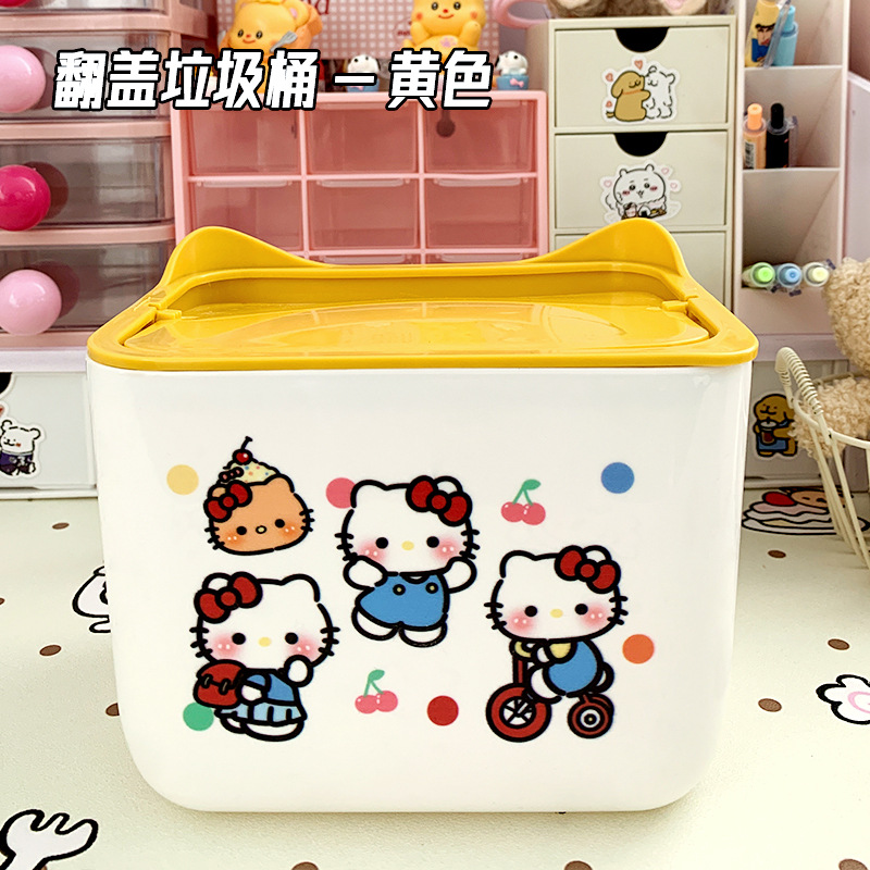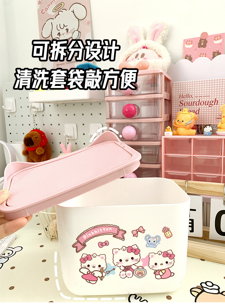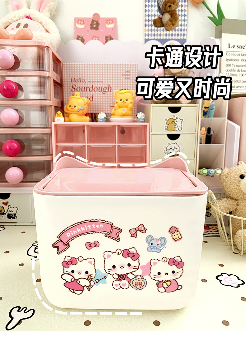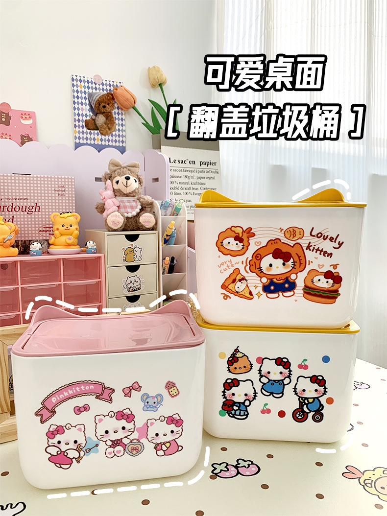KT 만화 데스크톱 휴지통, 가정용 미니 스몰 사이즈 학생 기숙사 책상 대용량 휴지통스토어 가기