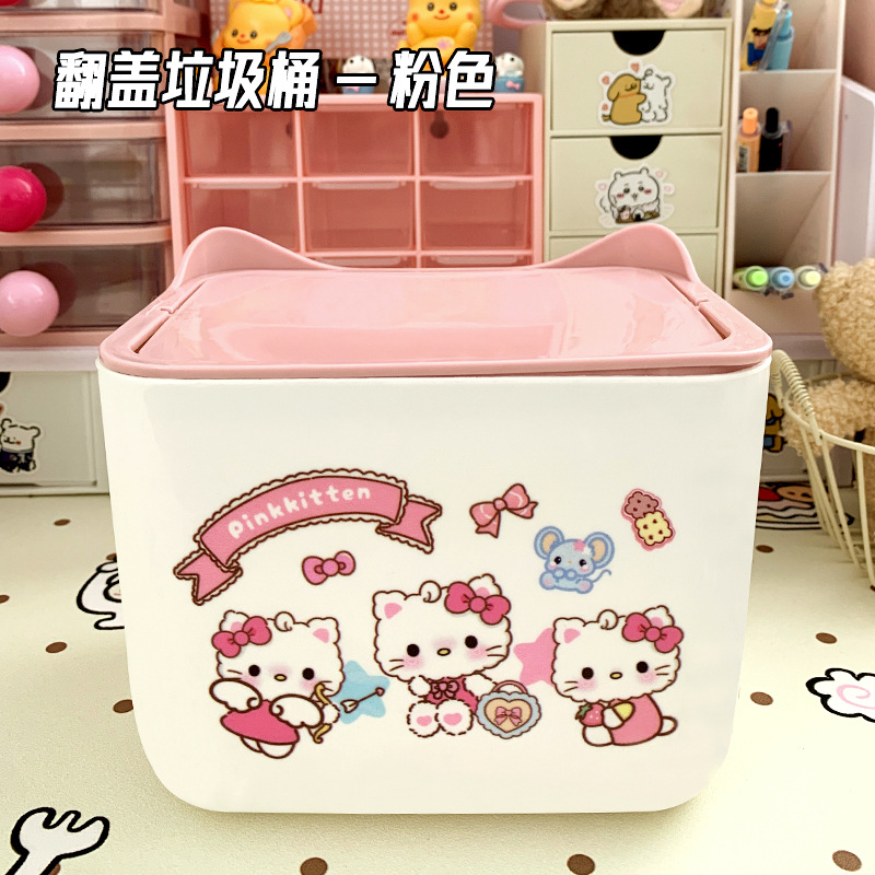KT 만화 데스크톱 휴지통, 가정용 미니 스몰 사이즈 학생 기숙사 책상 대용량 휴지통