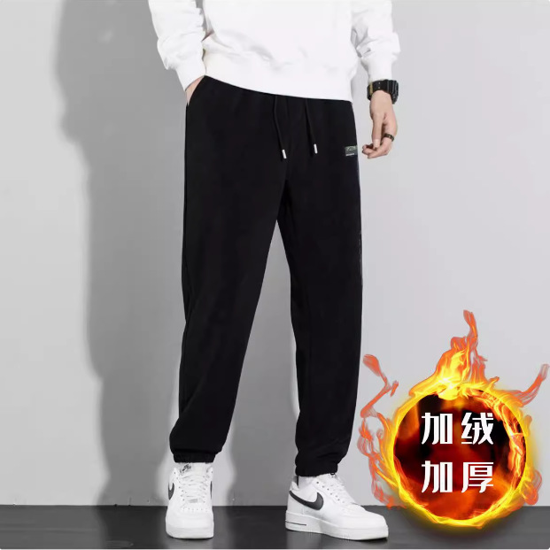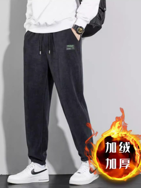 겨울 기모 두껍고 따뜻하고 느슨한 허리 남자 올 매치 플러스 사이즈 느슨한 캐주얼 바지 새로운 다리 길이 바지 스트레이트 다리 바지스토어 가기