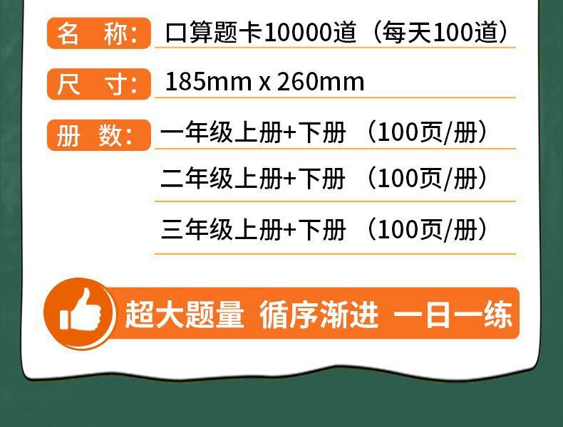 구두 계산 문제 카드 10000 1 학년, 1 권, 2 학년 및 3 학년, 상위 및 하위 볼륨, 수학 구두 계산 연습, 인민 교육 판스토어 가기